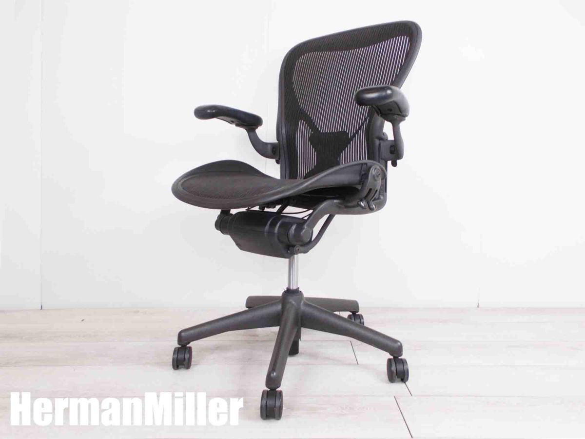 【★状態イマイチのためお安く!】■ハーマンミラー製 アーロンチェア Bサイズ 固定肘 ※キズあり・ランバーサポート無・昇降ガス圧弱めのためお安く!【訳あり特価品】