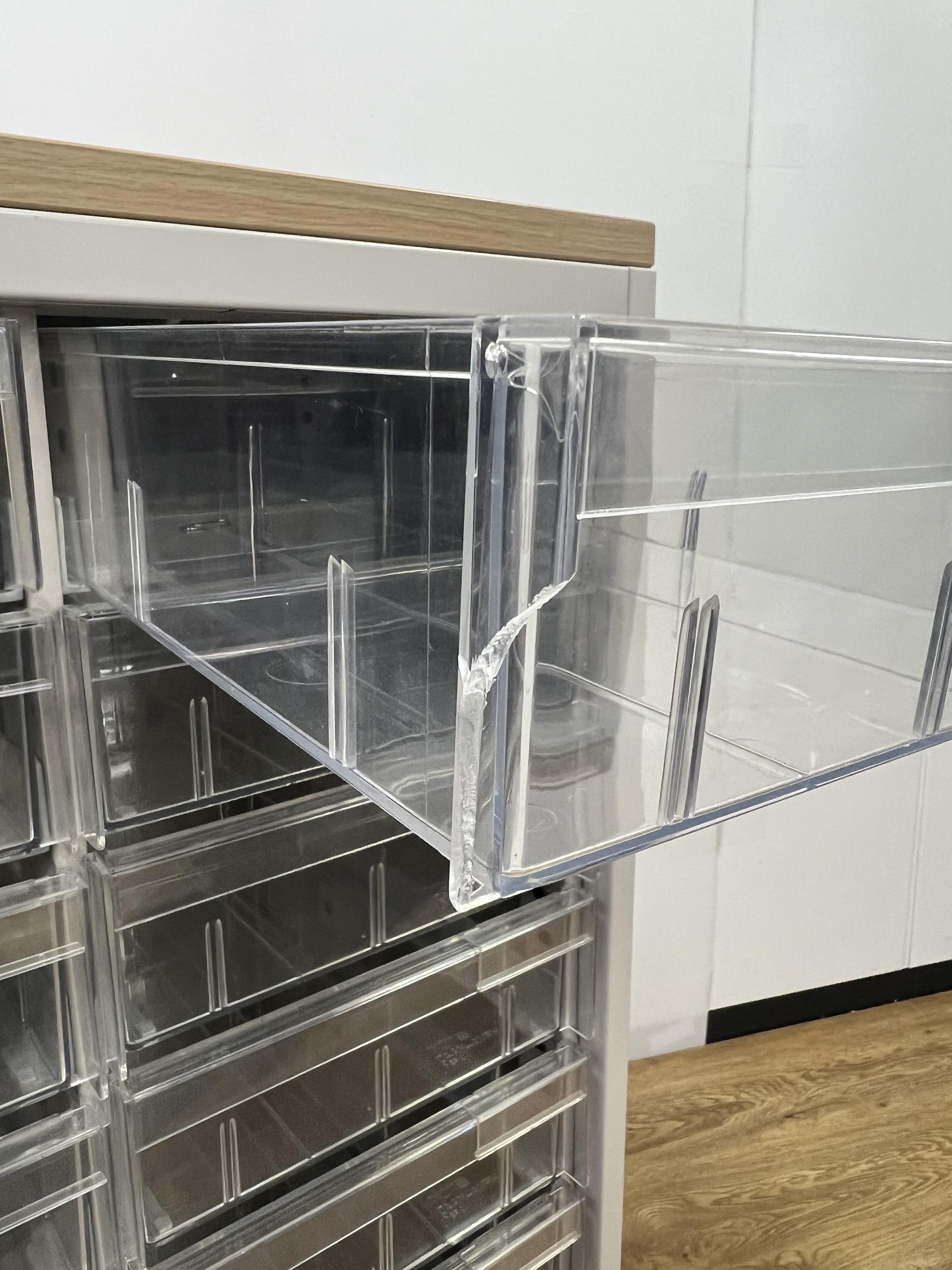 - 多数不具合あり引出の開閉不可、施錠不可、棚板無しといったその書庫の本来の効用を果たすための機能以外の多数が使用不可(例、扉、引出の開閉がしづらいなどがある。 )