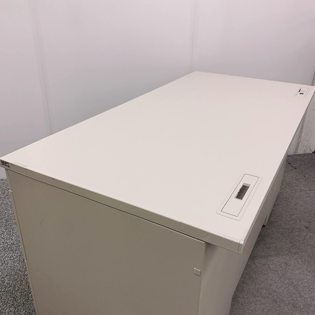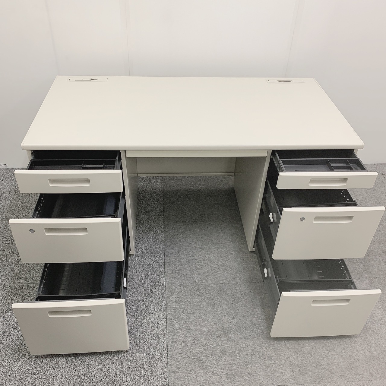 【在庫入替えセール!】【定価約16万円】【充実のワークスペース!豊富な引出しで机上をスッキリ整理!】■コクヨ(KOKUYO)製 BS+シリーズ 両袖デスク W1400mm ■配線口(片側仕様) ■ニューグレー ■シリンダー錠 ※日焼け有【AD】