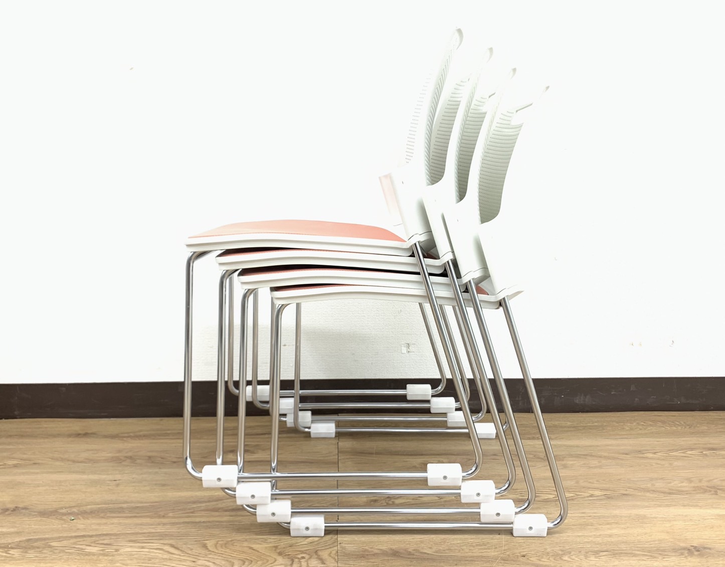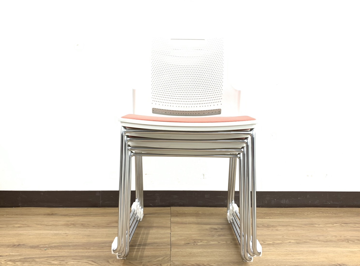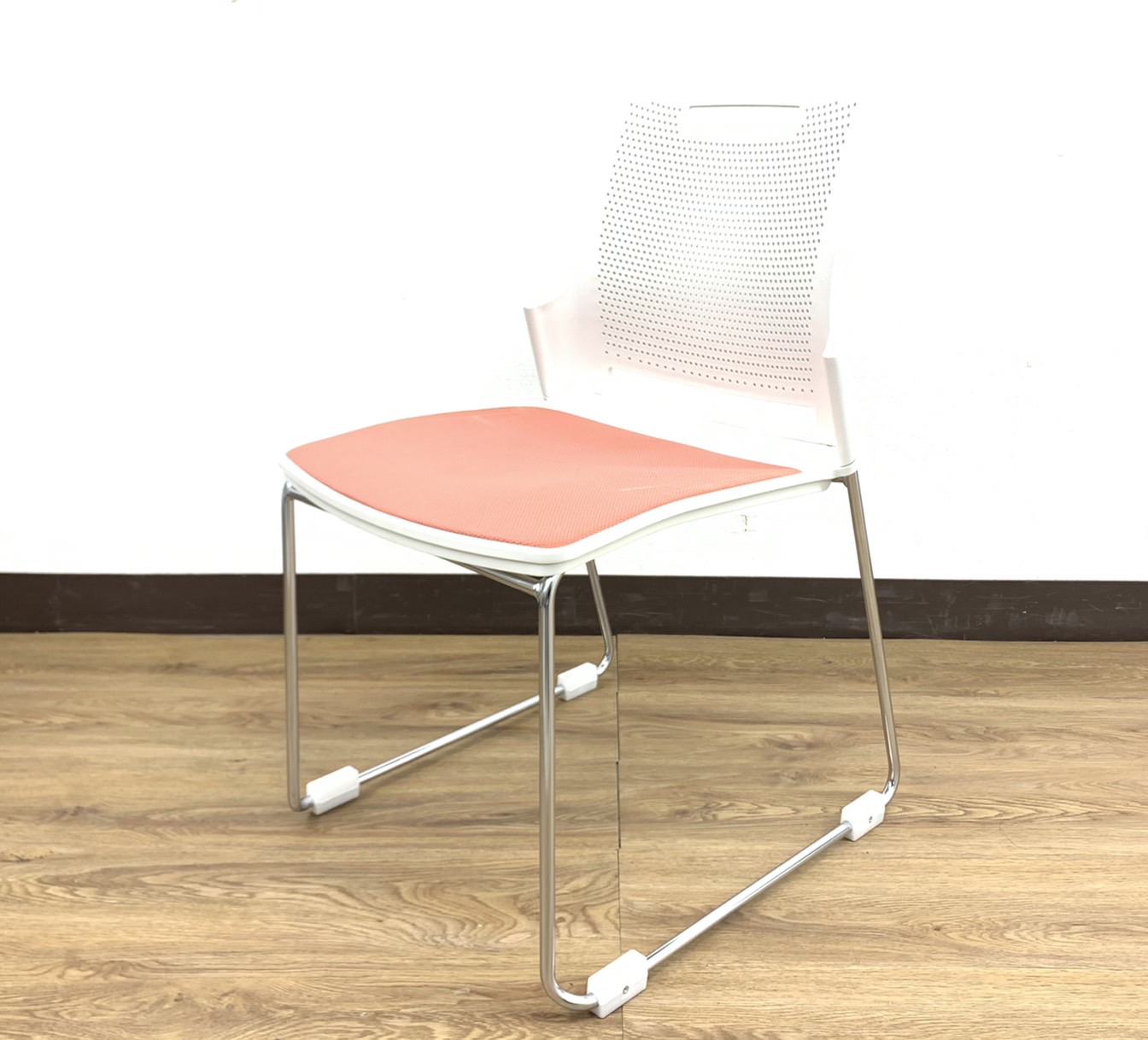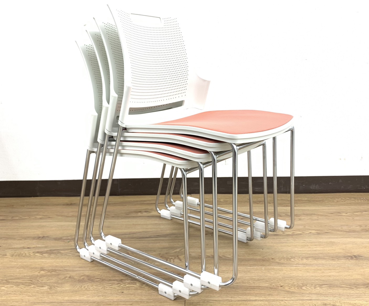 【2セット限定】休憩室・ミーティングスペース向け!ホワイト&ピンクカラースタッキングチェア◆オカムラ製【RP】- 埼玉本店