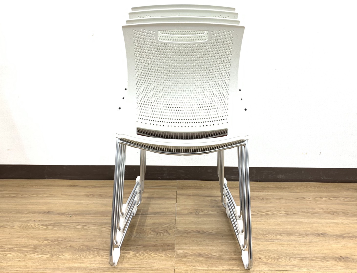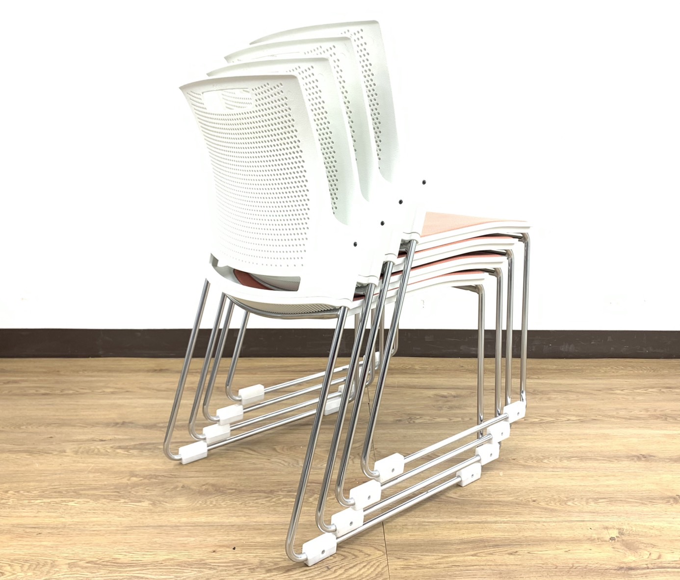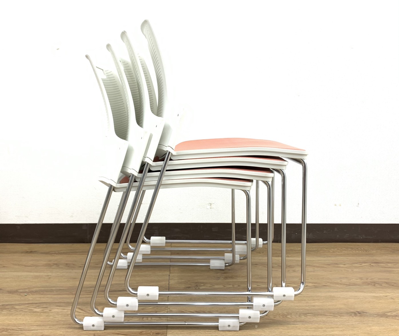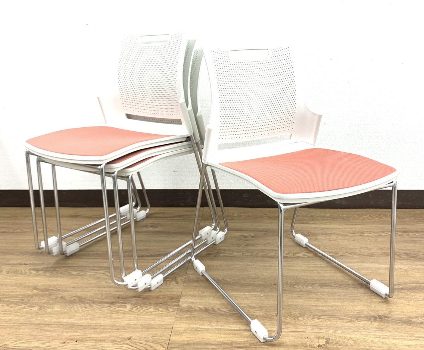 【2セット限定】休憩室・ミーティングスペース向け!ホワイト&ピンクカラースタッキングチェア◆オカムラ製【RP】- 埼玉本店
