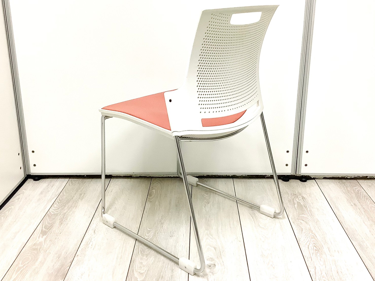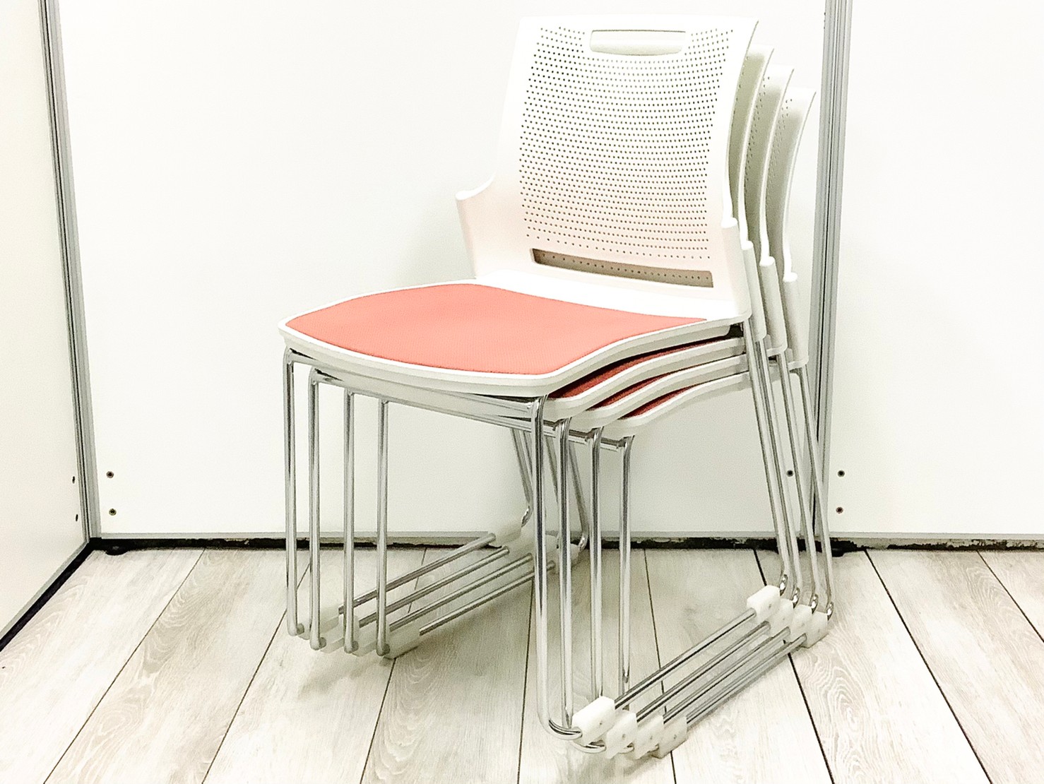 【4脚セット価格!】会議・セミナーや休憩所等での定番商品!オカムラ 可愛らしいピーチ(ピンク)カラー!- 足立・葛飾店