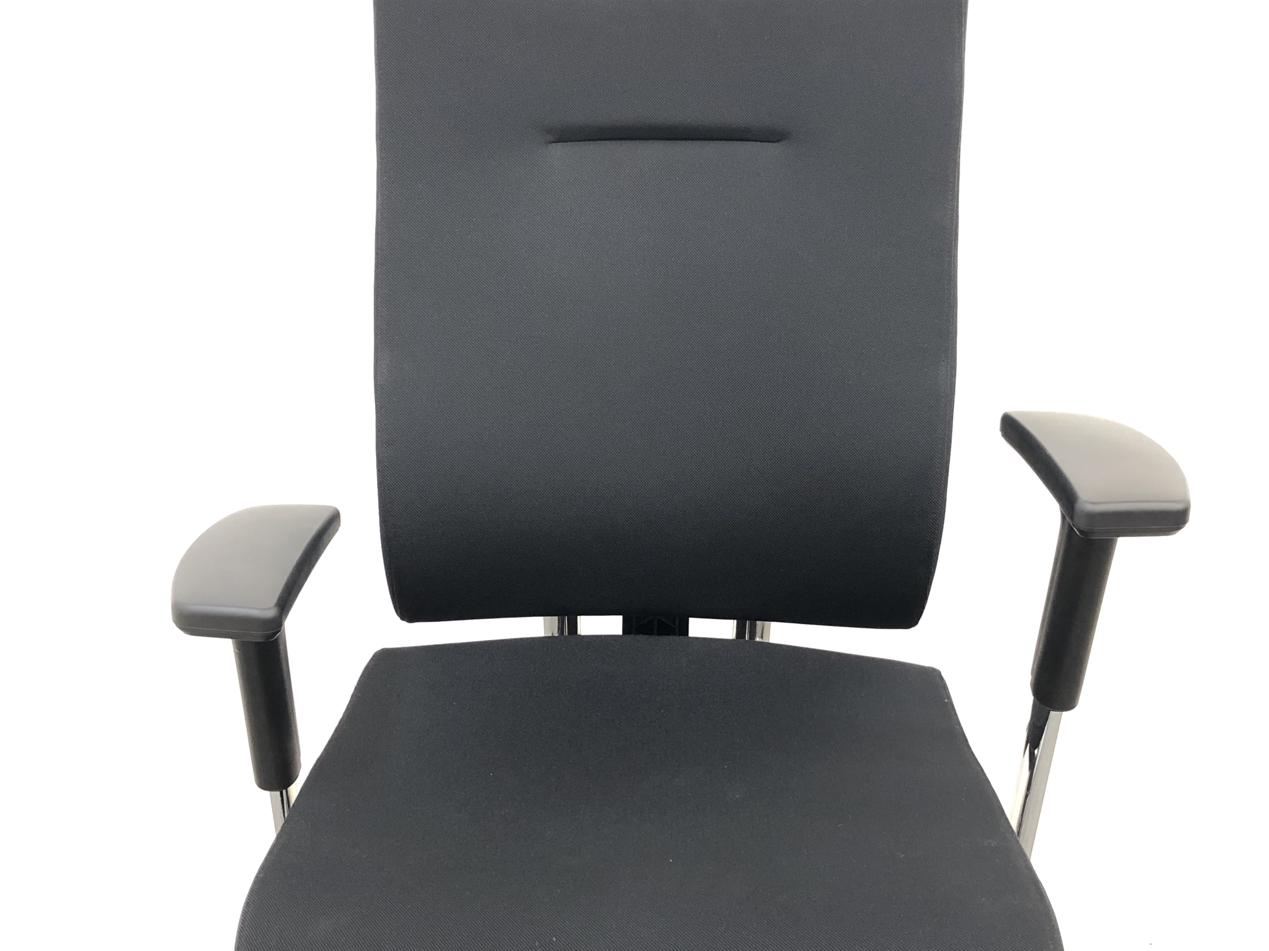 可動型の肘掛けとブラッククロス張りの背もたれ、ポリッシュ脚仕様となります!