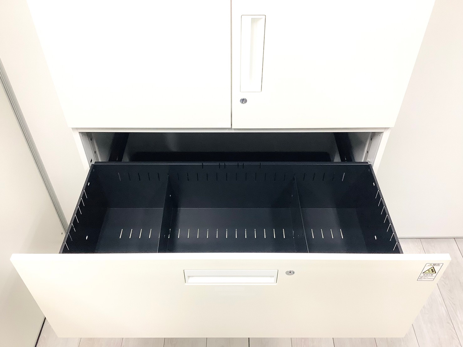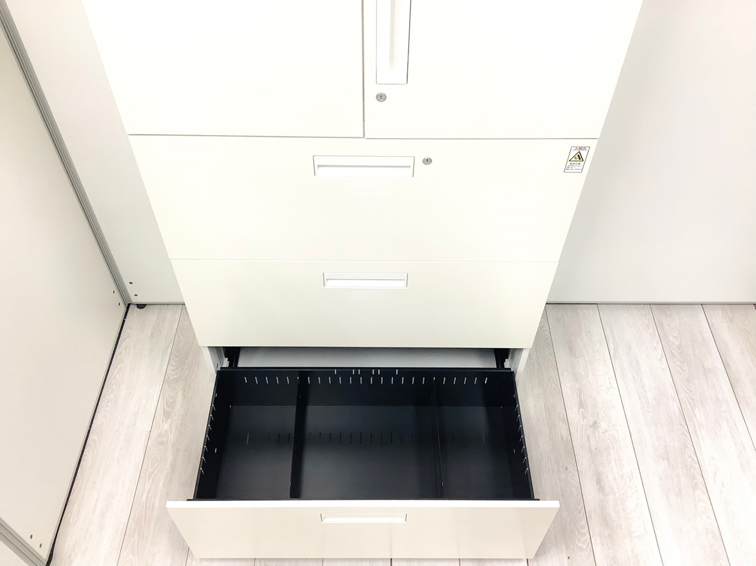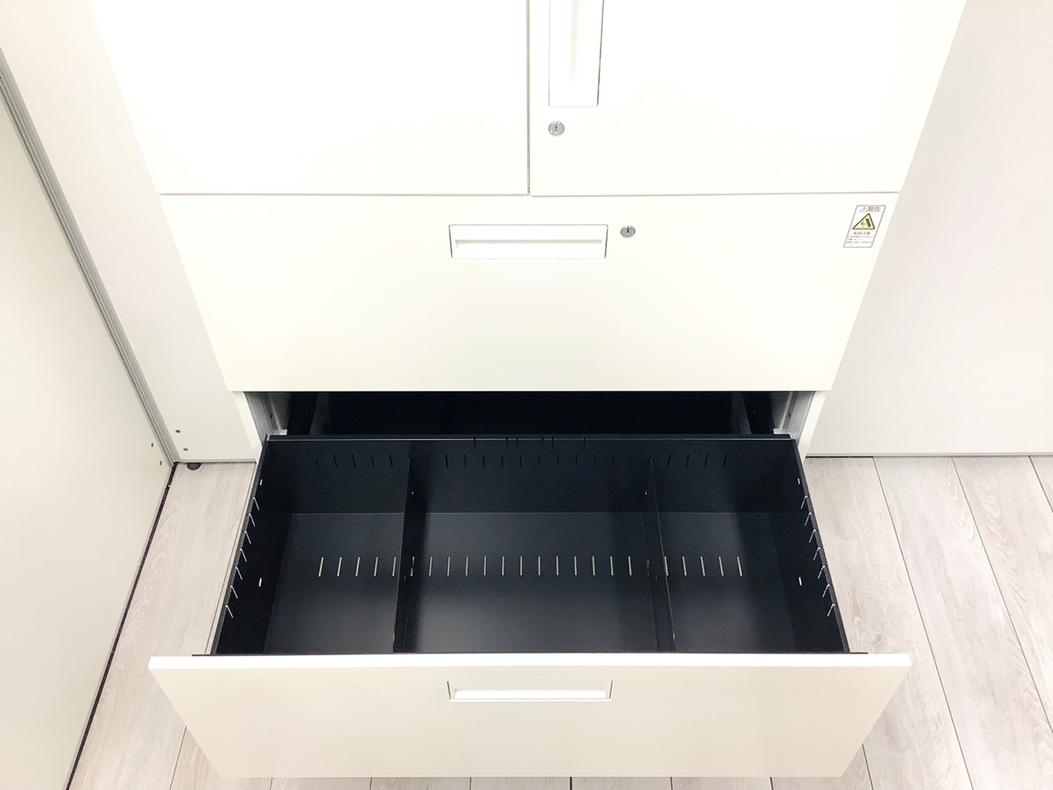 - 両開きタイプは扉が180度開き、通路の邪魔になりません。ラテラルタイプは引出しが限界まで出せ、出し入れ楽々。