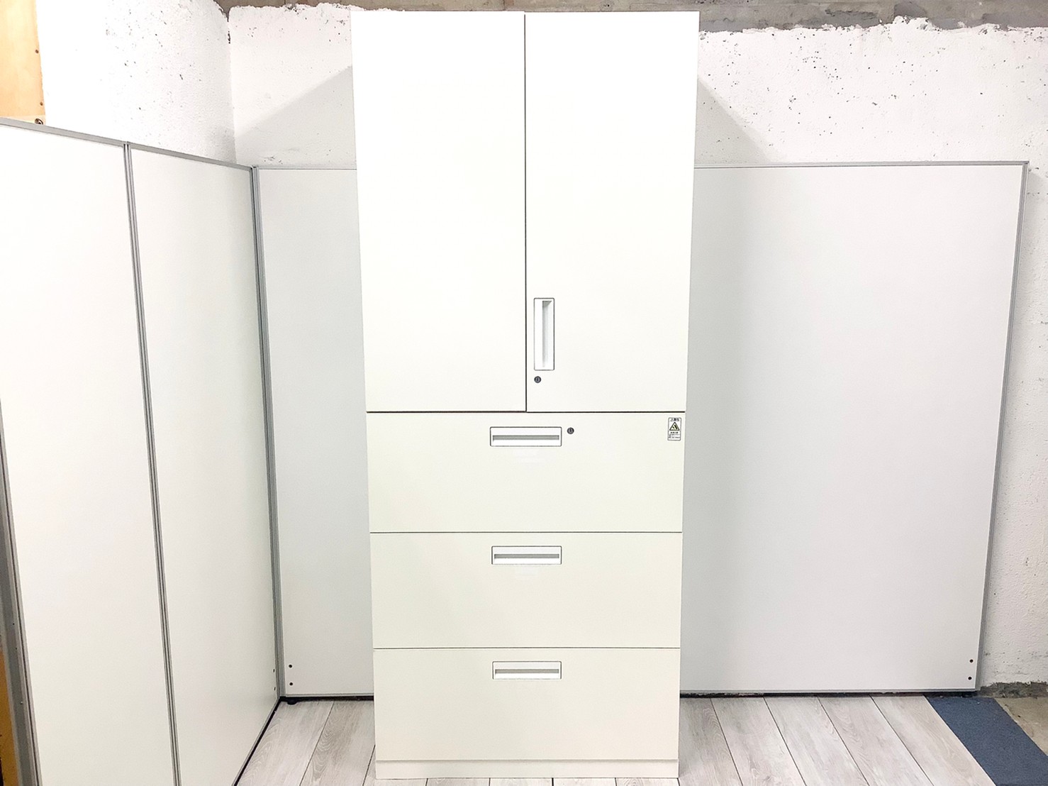 【両開き書庫とクリスタルトレイキャビネットの上下書庫セットの入荷です】 ■コクヨ/エディア/ホワイト 両開き+クリスタルトレー 深型3列11段 計33段