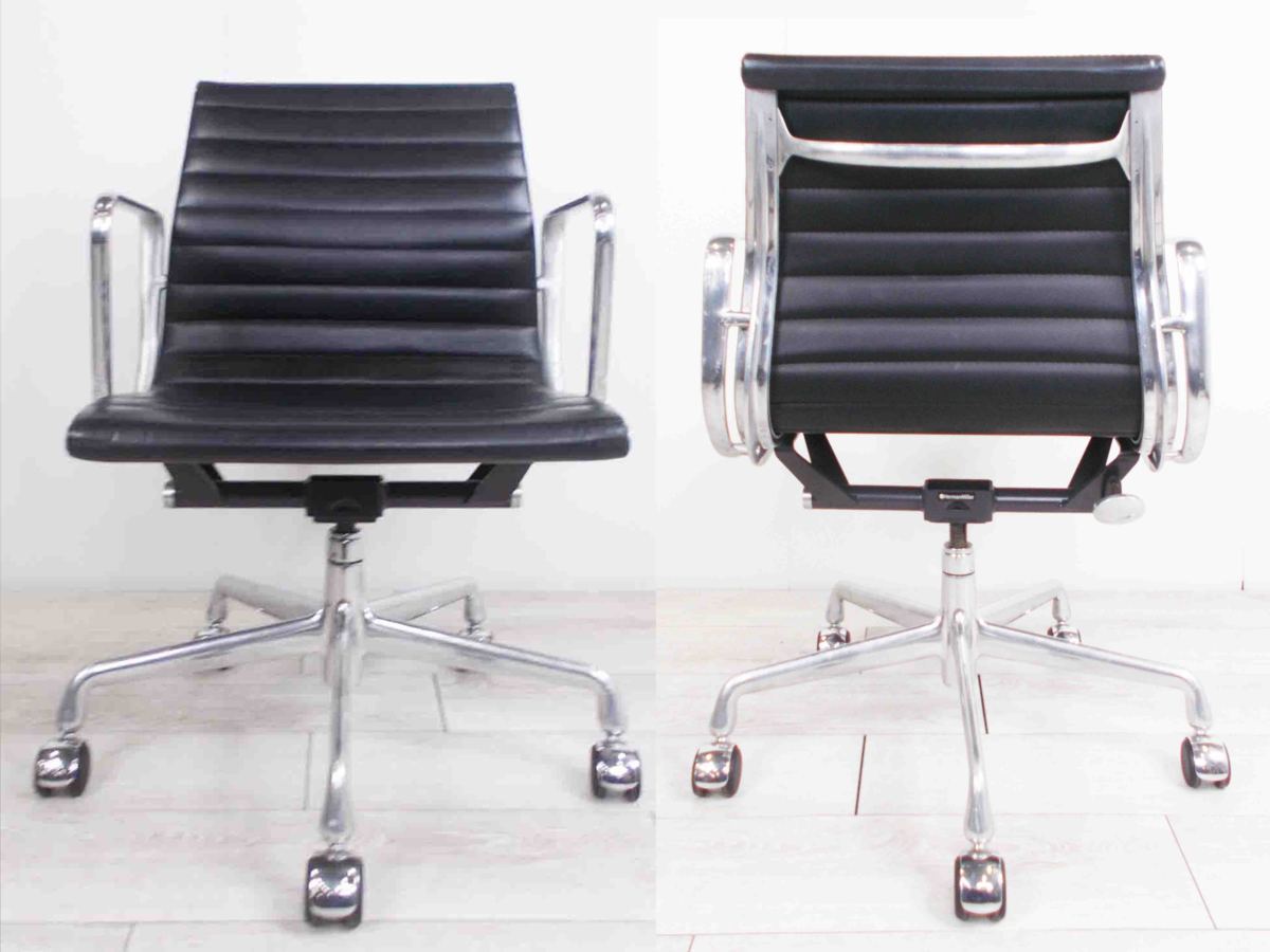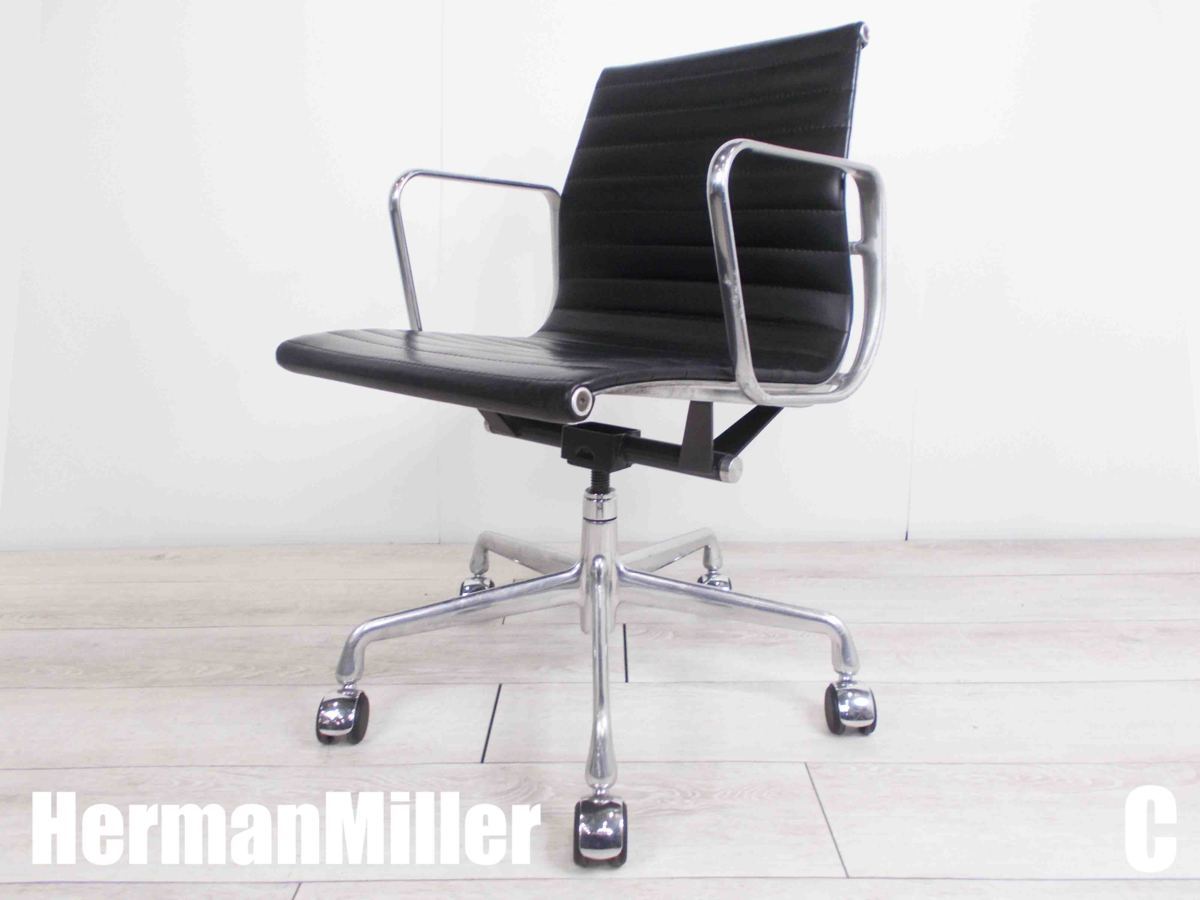 3C)HermanMiller/ハーマンミラー イームズ アルミナムチェア ローバック ブラック 本革在庫がある店舗一覧
