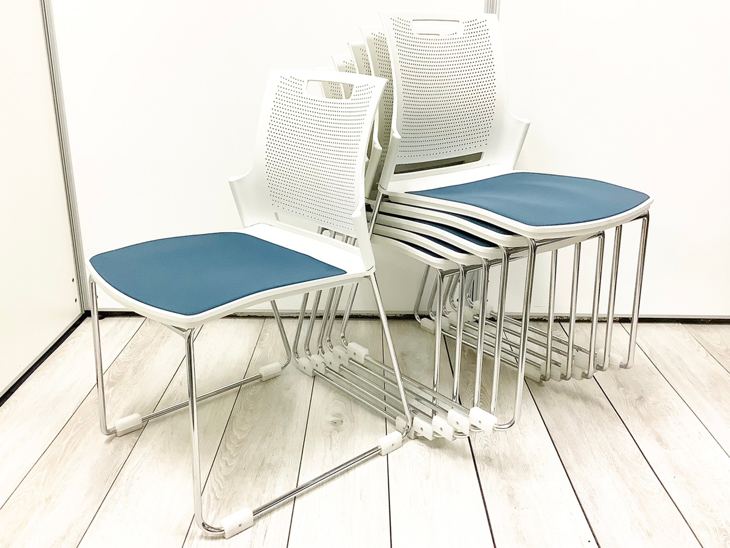 【6脚1セット】シンプルデザインで、収納スペースもとらないのでどんなお部屋にもピッタリです! ■オカムラ/スタッキングチェア/スカラールフト/ブルー/6脚セット- 池袋店