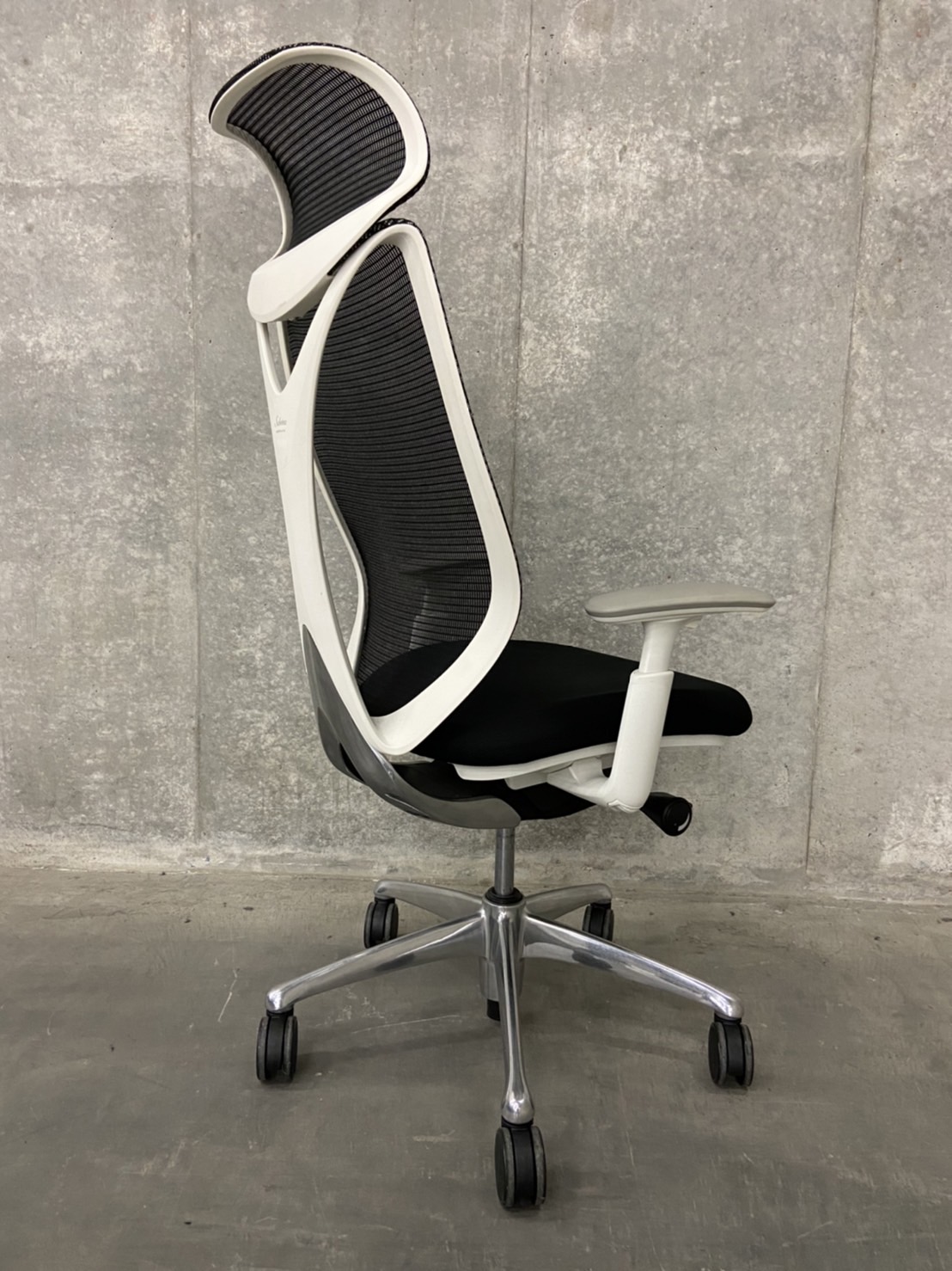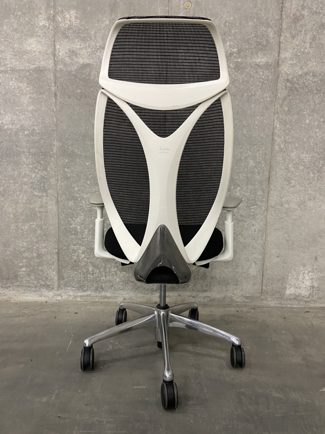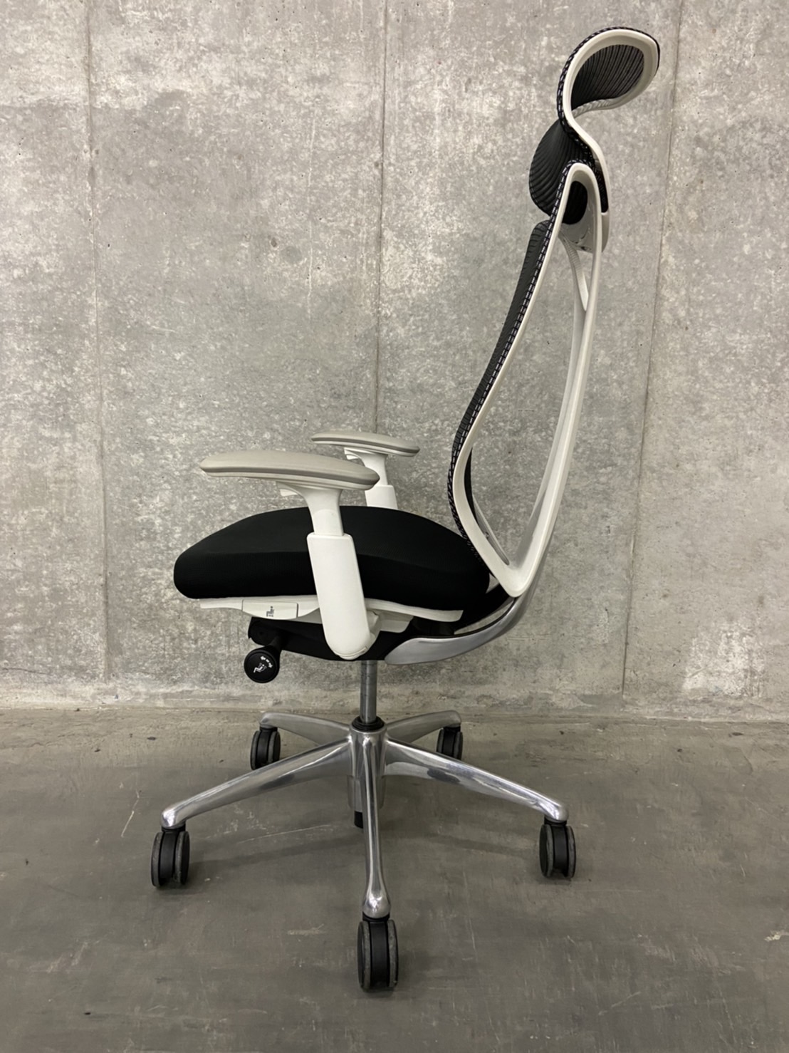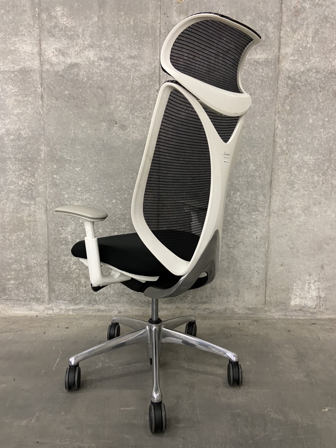 【前傾チルト付・流れるような美しいフォルムの最高級メッシュチェア!】■オカムラ(okamura)製 サブリナ(Sabrina) 肘付き エクストラハイバックチェア 背面メッシュ ■可動肘・ヘッドレスト・ハンガー付き ■ブラック【オフィスにもご自宅用にも人気の一品!】