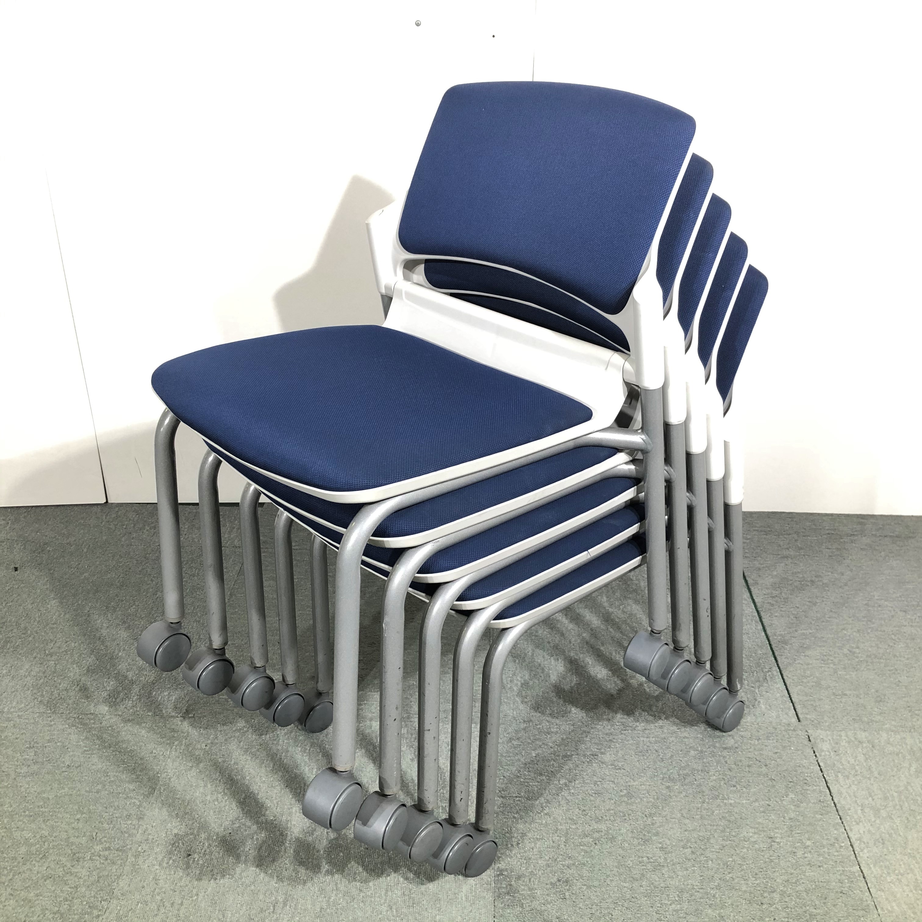 【残り2脚の為、お安く!】【キャスター付きで使いやすい!ミーティングに最適!】■ウチダ(UCHIDA)製 MF-180シリーズ スタッキングチェア ミーティングチェア ■キャスター付き ■レイズンブルー×ホワイトシェル