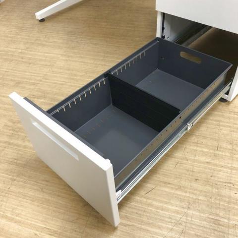 - 地震時、センター引出しが飛び出さないよう、ラッチ機構を装備。脚はデスクの横ズレを軽減させる設計になっています。
