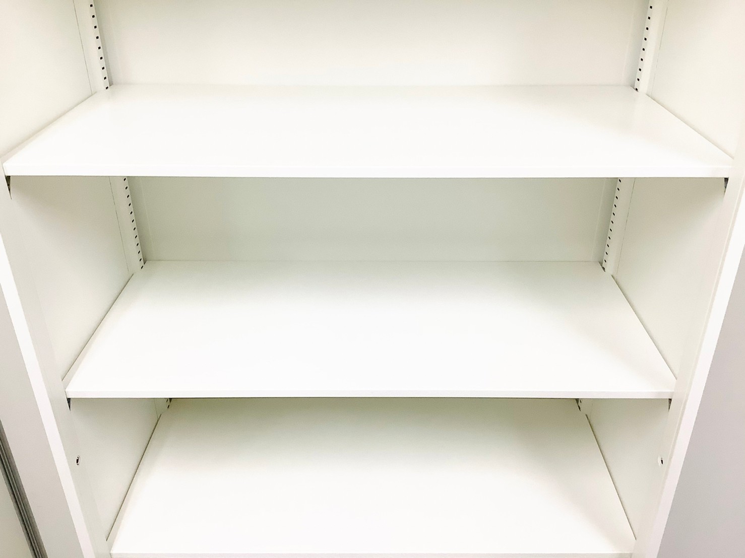 スライド式の扉+引き出しタイプの便利な書庫セットが入荷!使い勝手抜群のハイキャビネットが入荷! ■オカムラ/レクトライン/ホワイト 2枚引き戸+3段ラテラルキャビネット