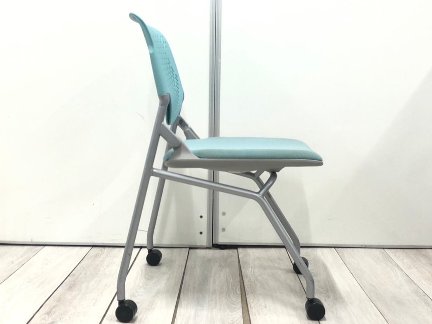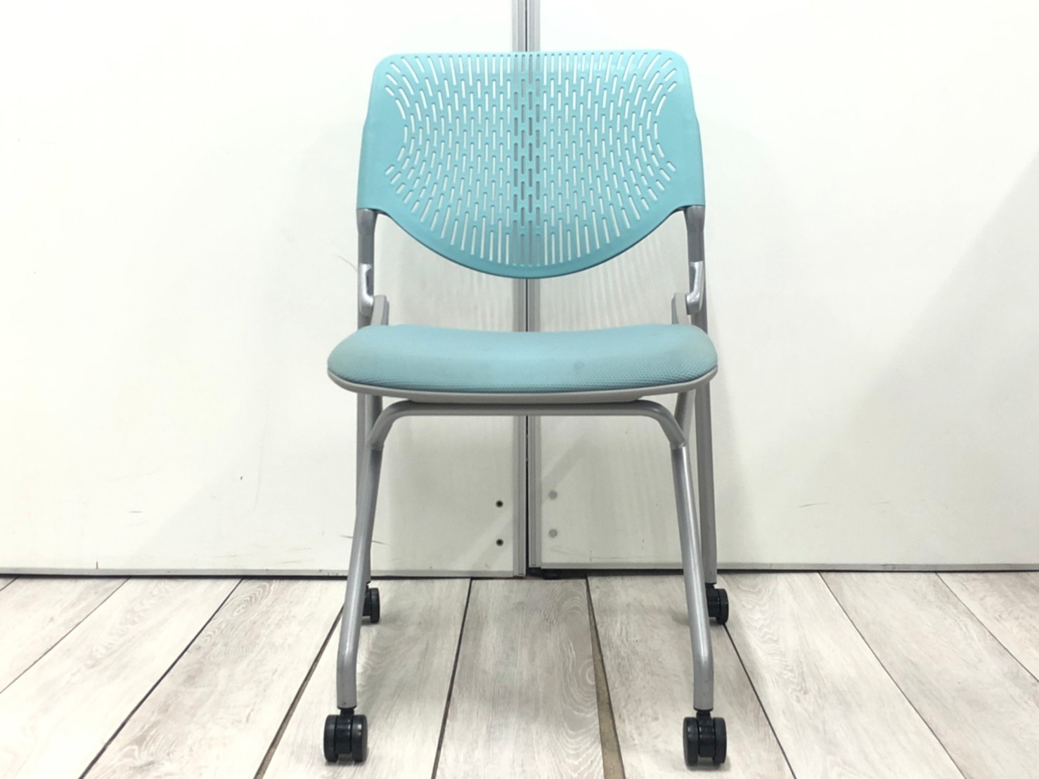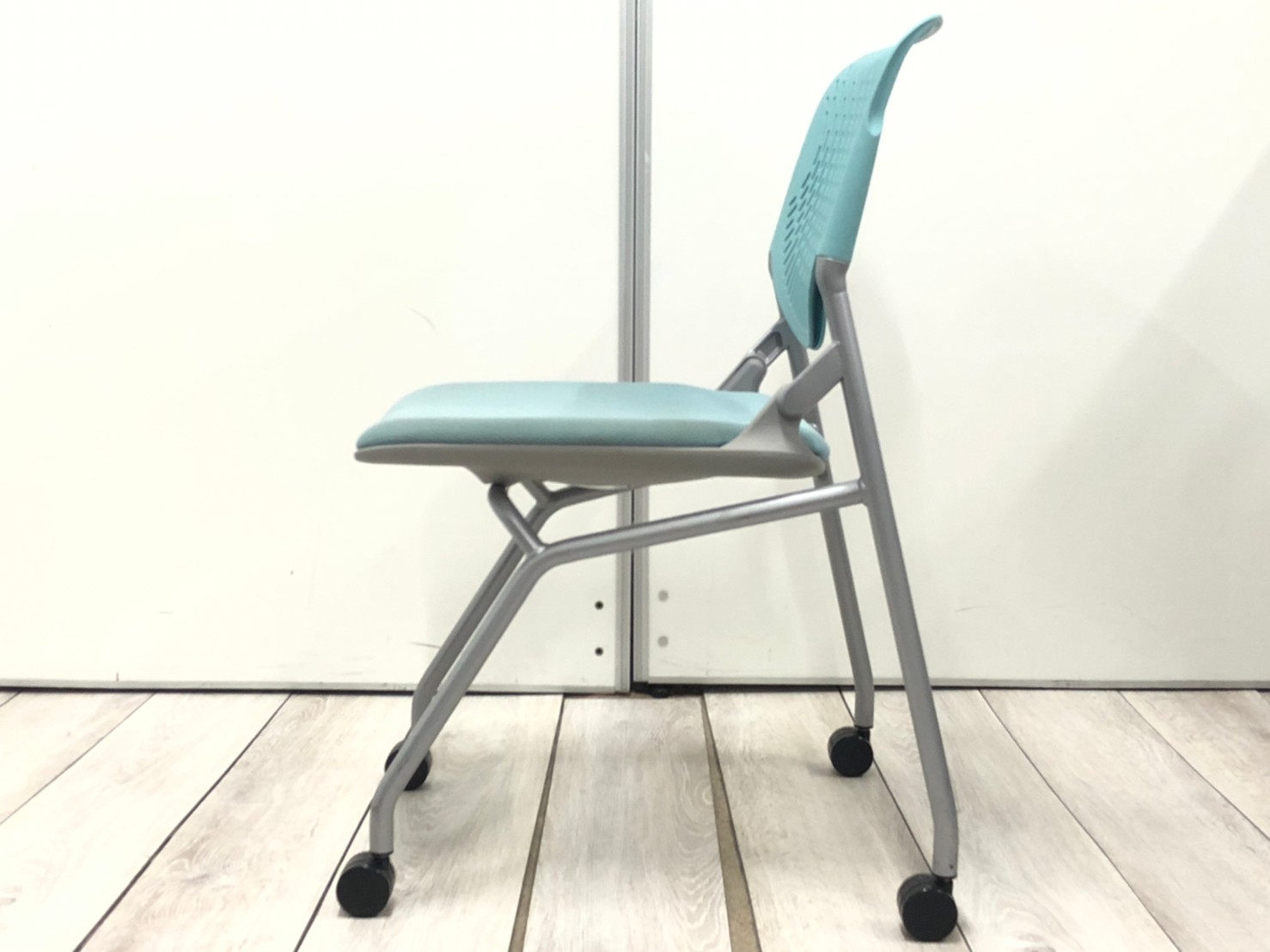 【大量入荷!!】ライトブルーにそそられる!収納性抜群のネスティングチェア!■オカムラ/ルナ/ブルー- 立川・八王子店