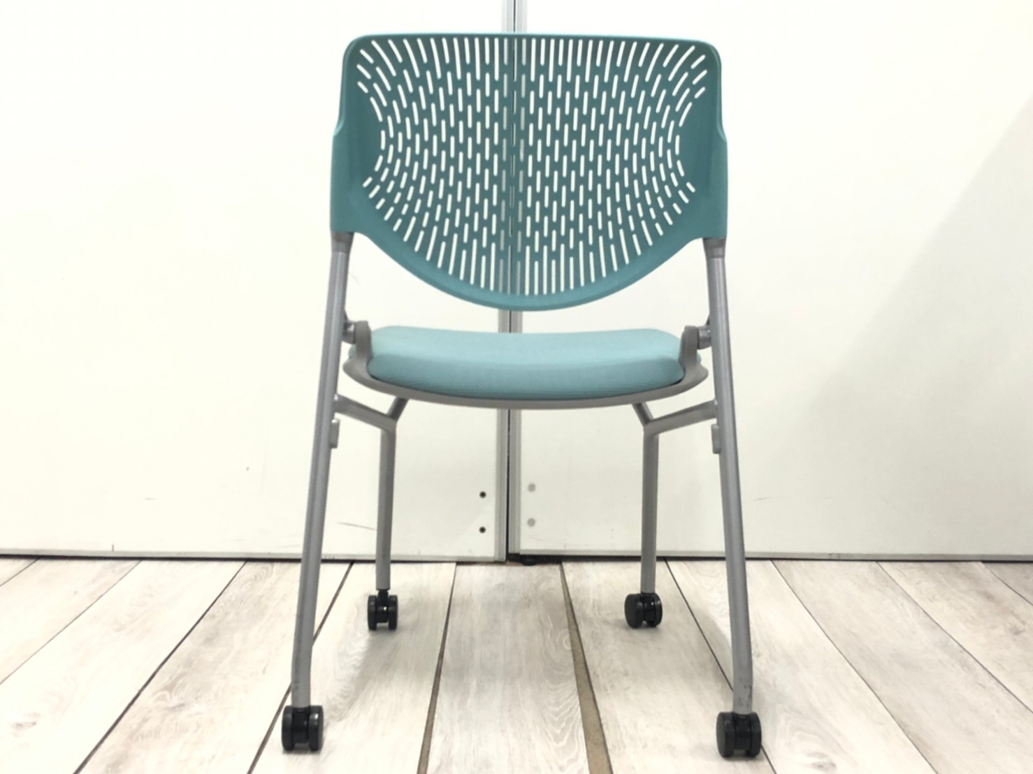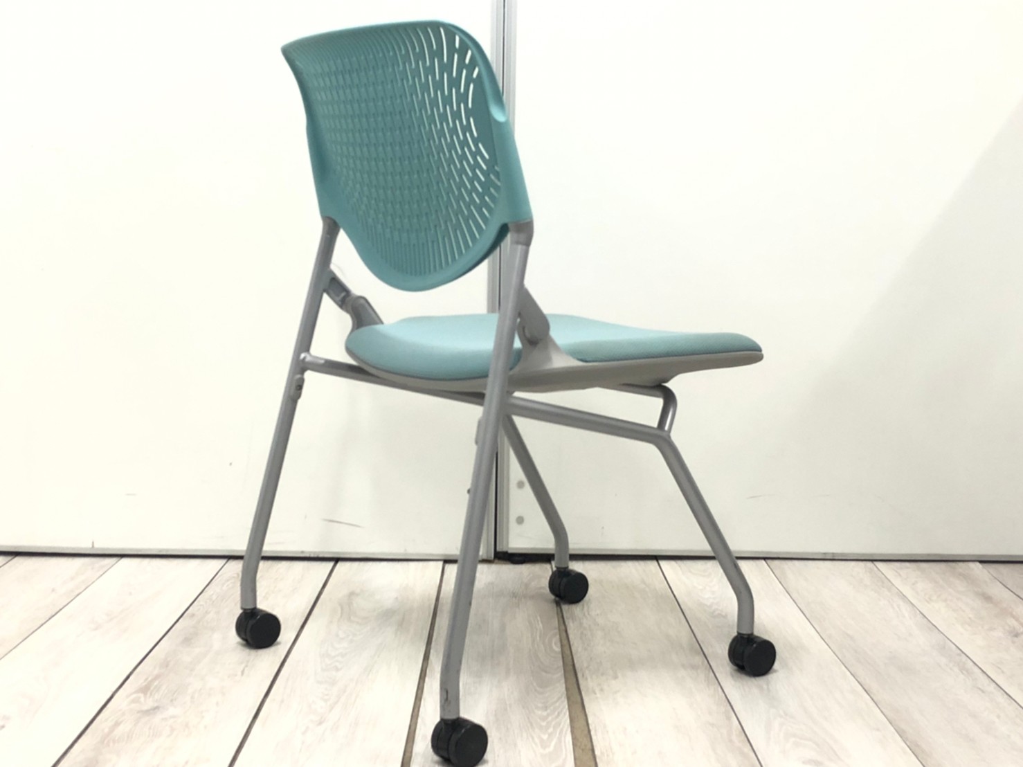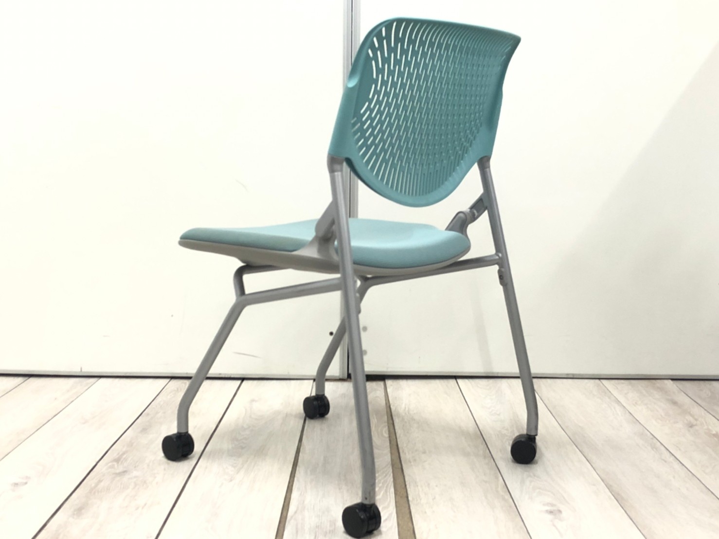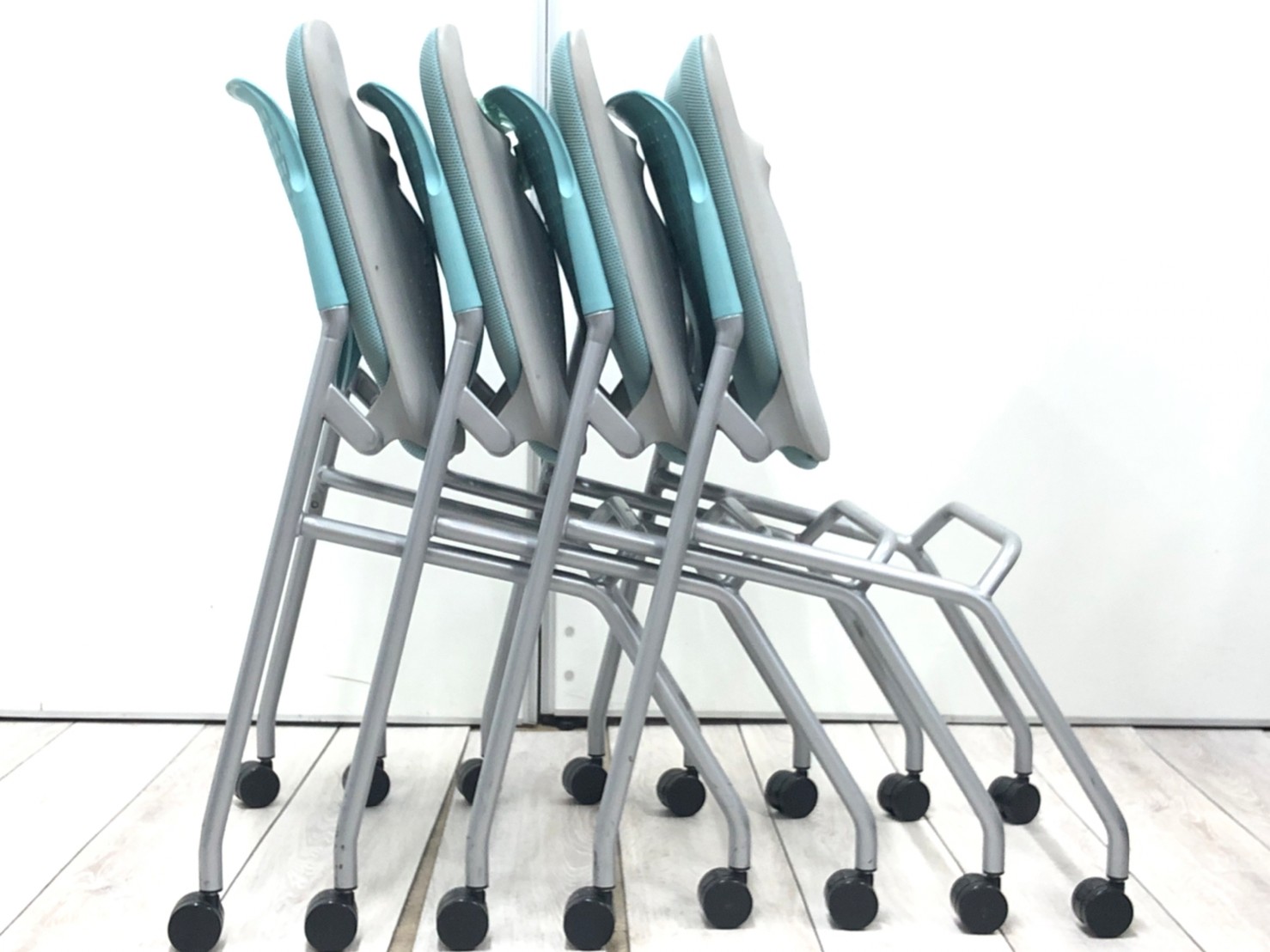 【大量入荷!!】ライトブルーにそそられる!収納性抜群のネスティングチェア!■オカムラ/ルナ/ブルー- 立川・八王子店