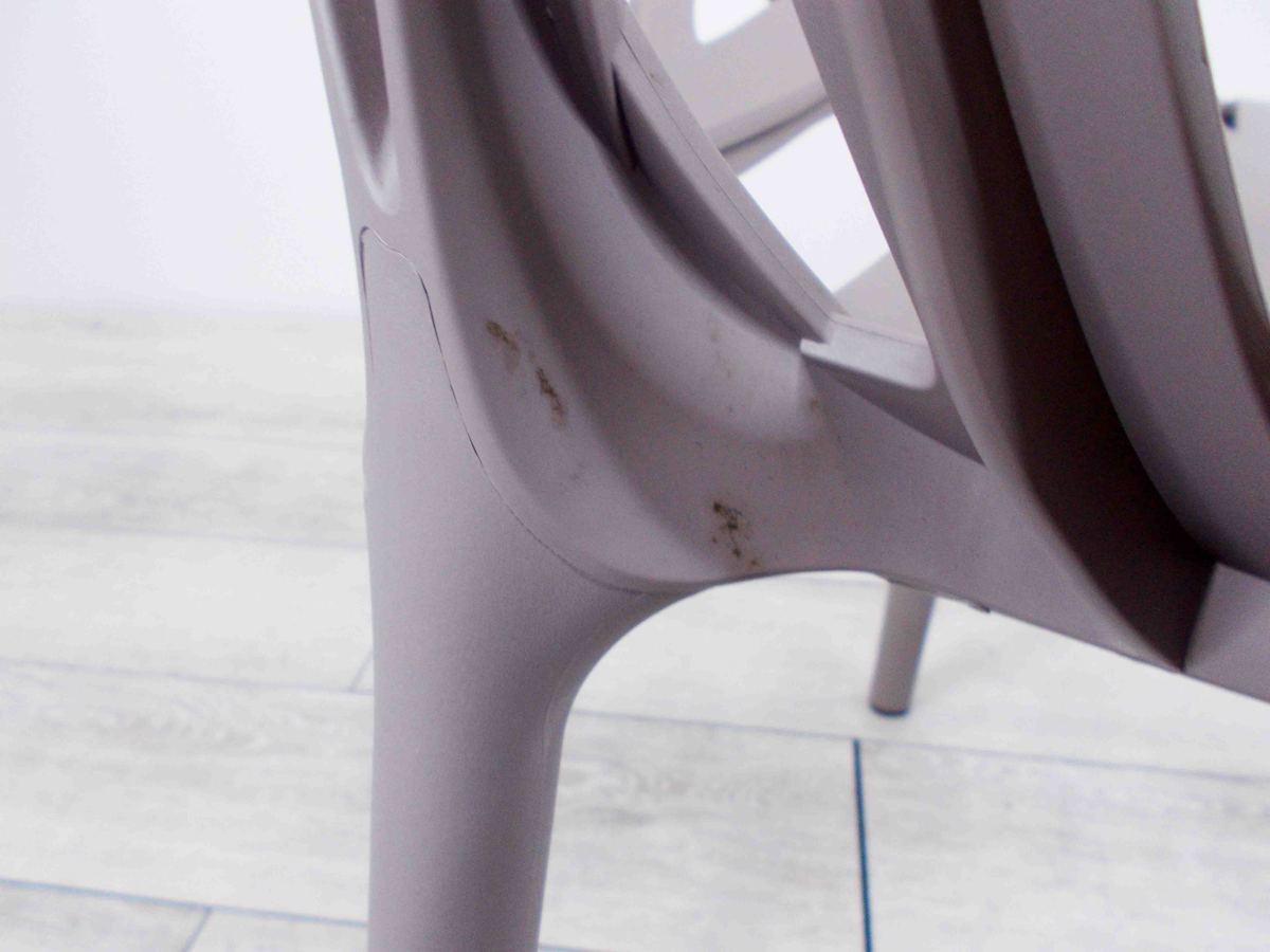 - かなり強い濃い黄ばみ・変色が商品全体にある。(例、座面・背もたれ、脚部等にある。)