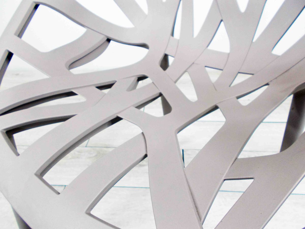 葉脈をモチーフにしたようなポリアミド製の成型シェルが特徴で、屋内外で使用可能。3脚までのスタッキングに対応するマルチガーデンチェアです。