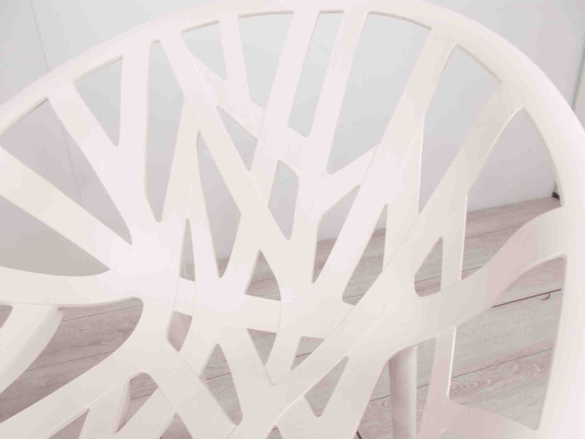 葉脈をモチーフにしたようなポリアミド製の成型シェルが特徴で、屋内外で使用可能。3脚までのスタッキングに対応するマルチガーデンチェアです。