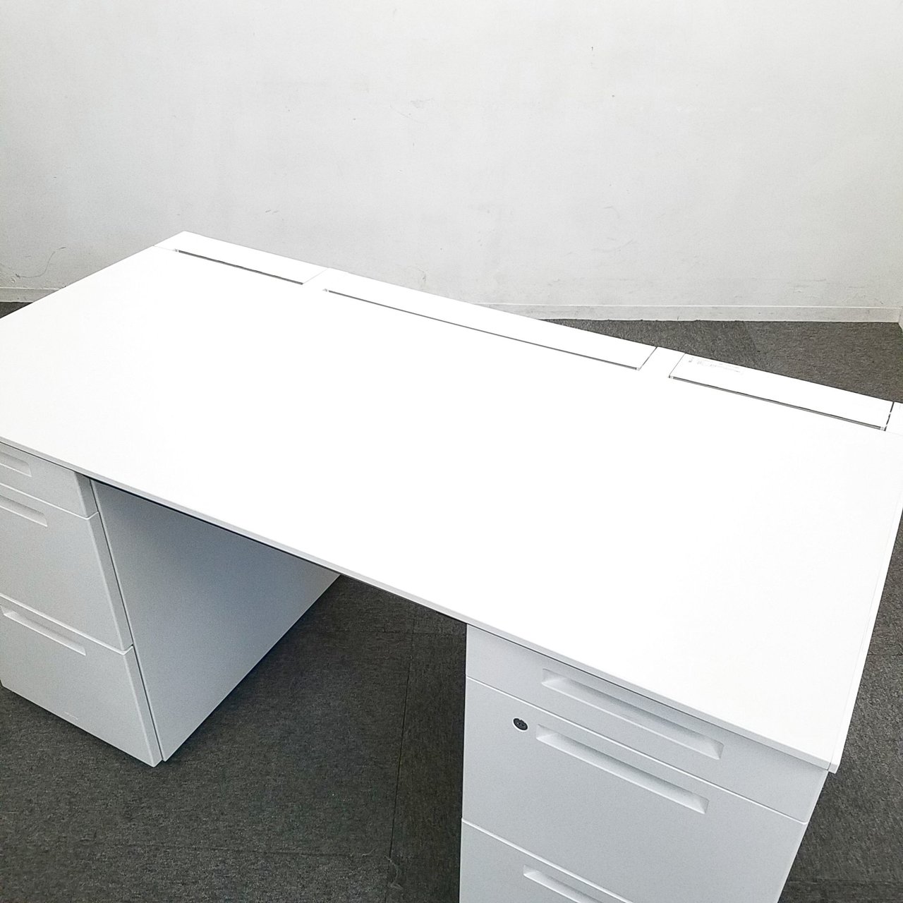 【T11】【商品入替のため、残り4台限り】コクヨ製 アイエス(IS) ホワイト 両袖 デスク W1400xD700xH720サイズ シリンダー 収納スペース充実! 机上をスッキリ整理! 幅広いワークスペースで上長席にもオススメ! W1400両袖机!!