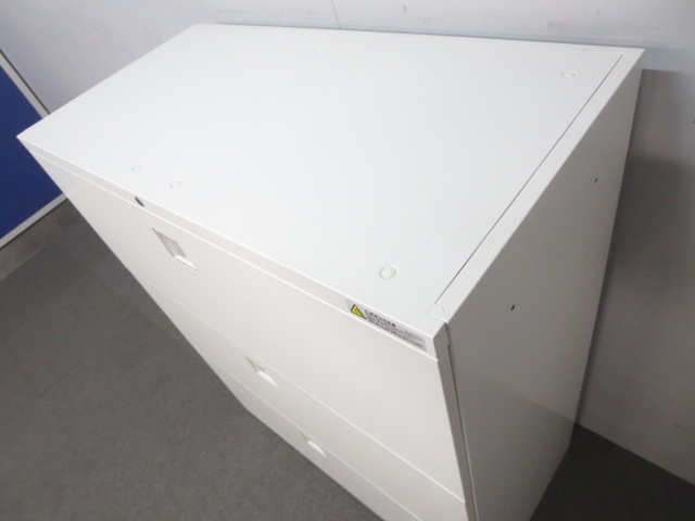【ファイル収納にオススメ!高品質で使いやすい人気シリーズの3段ラテラル書庫!】■オカムラ(okamura)製 レクトラインシリーズ 3段ラテラル書庫 ローキャビネット H1100㎜ ■ホワイト ■シリンダー鍵 ■天板付き(天板:ホワイト) ※日焼け有