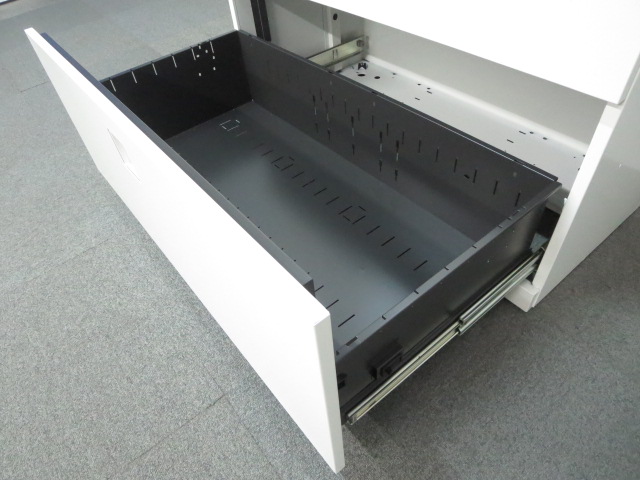 【オフィスの必需品!大容量の三段キャビネット!】■オカムラ(okamura)製 レクトラインシリーズ 3段ラテラル ローキャビネット ■ベース付 ■シリンダー錠 ■ホワイト 【弊社使用欄:A01037187】