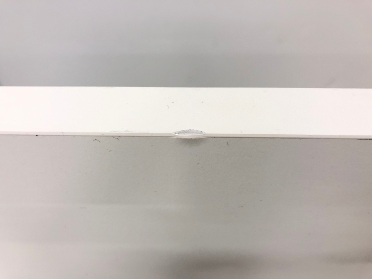 - 目立つ箇所複数あり深い傷・凹みが商品全体にある。(例、天板、幕板、棚板、サイド部分、脚部等にある。)