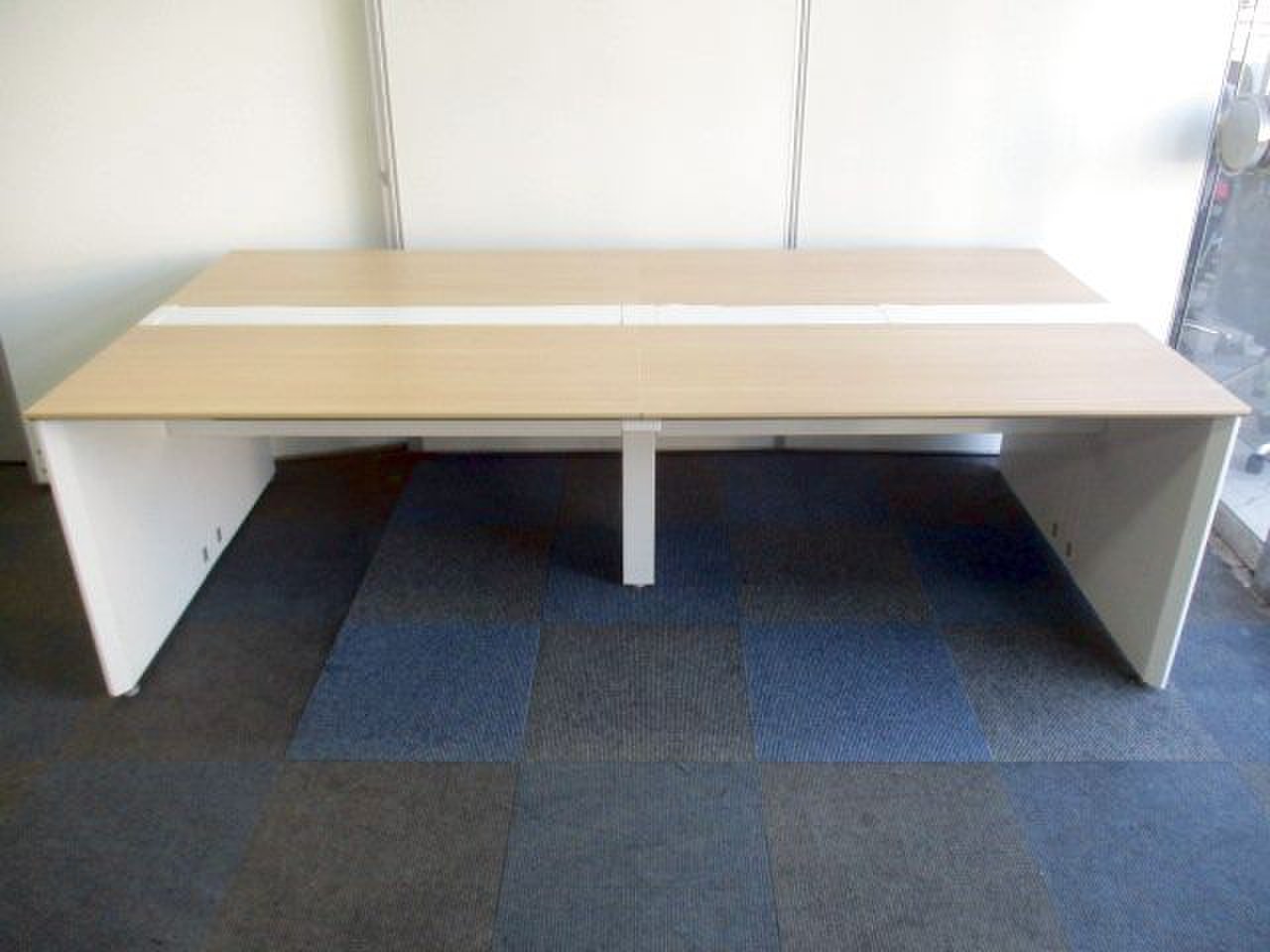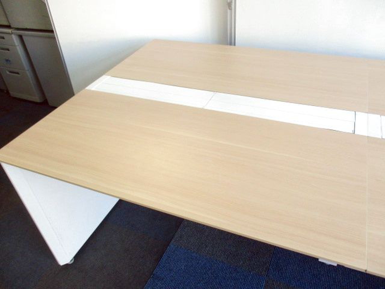 オフィス内を爽やかな雰囲気にする木目調のナチュラル天板にホワイトボディです!