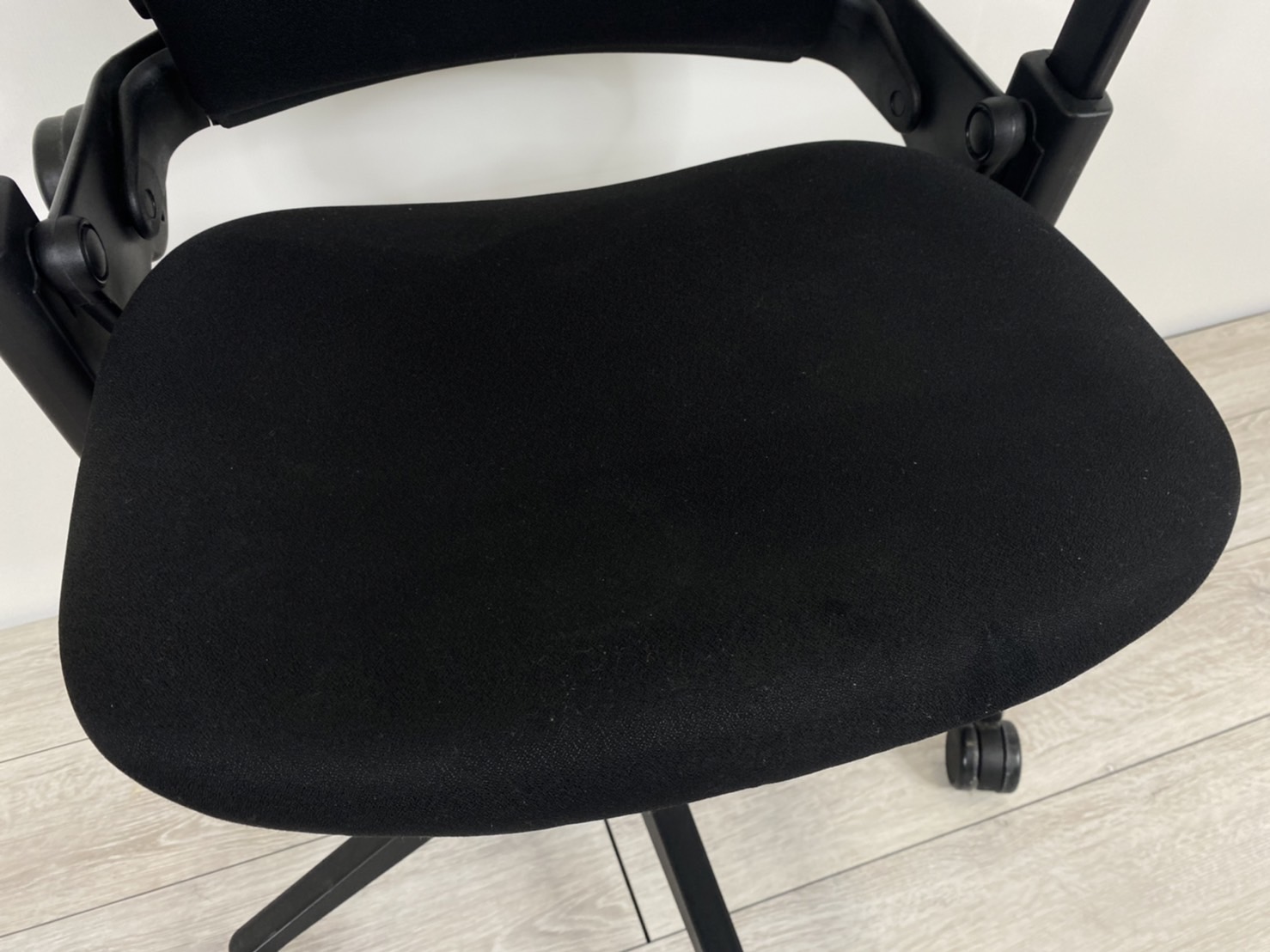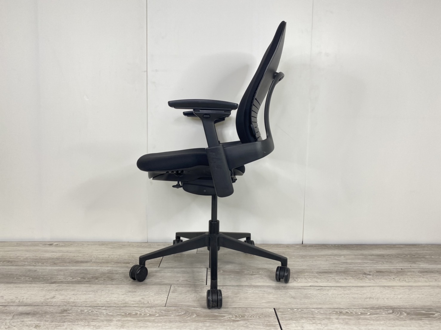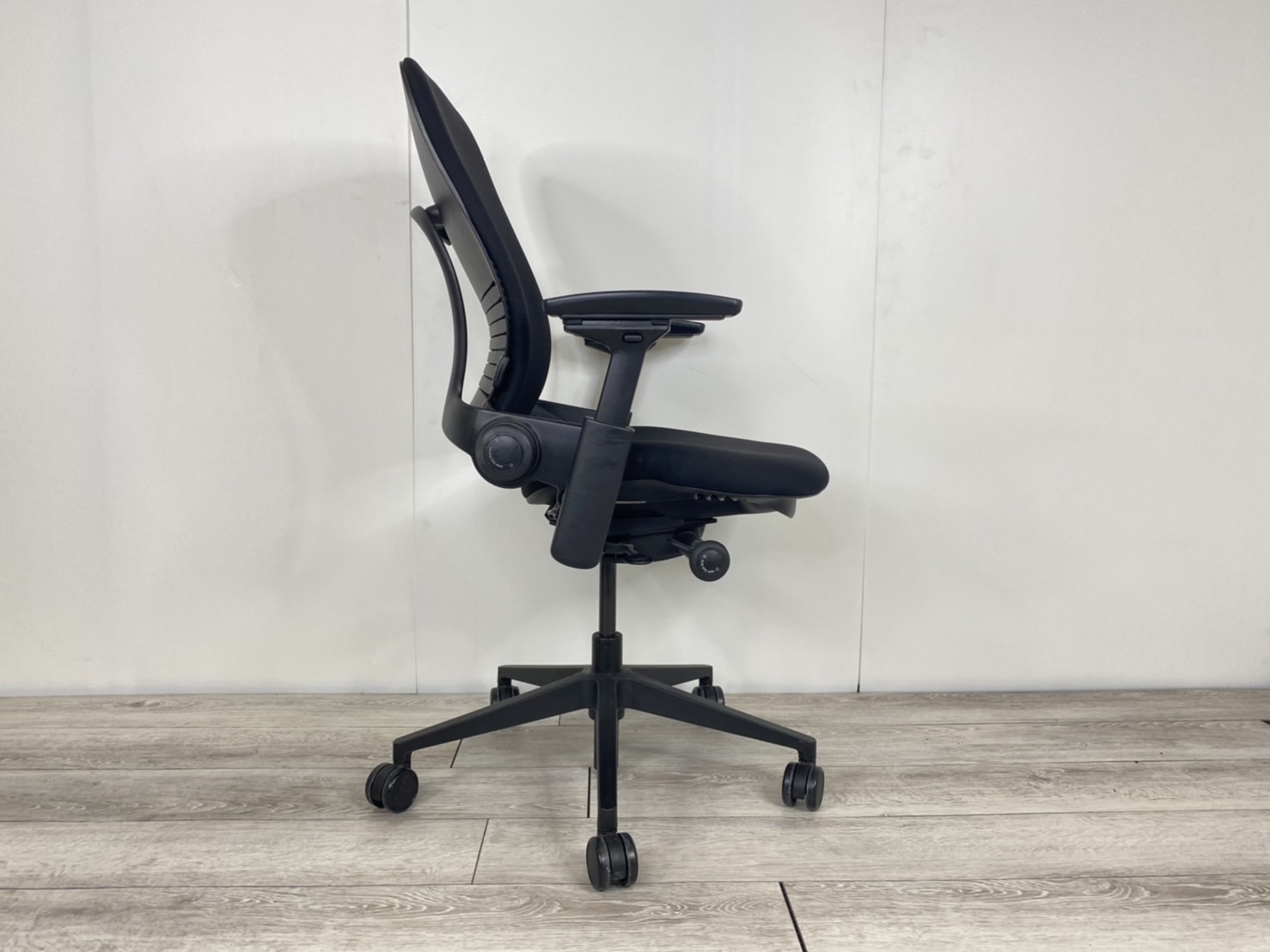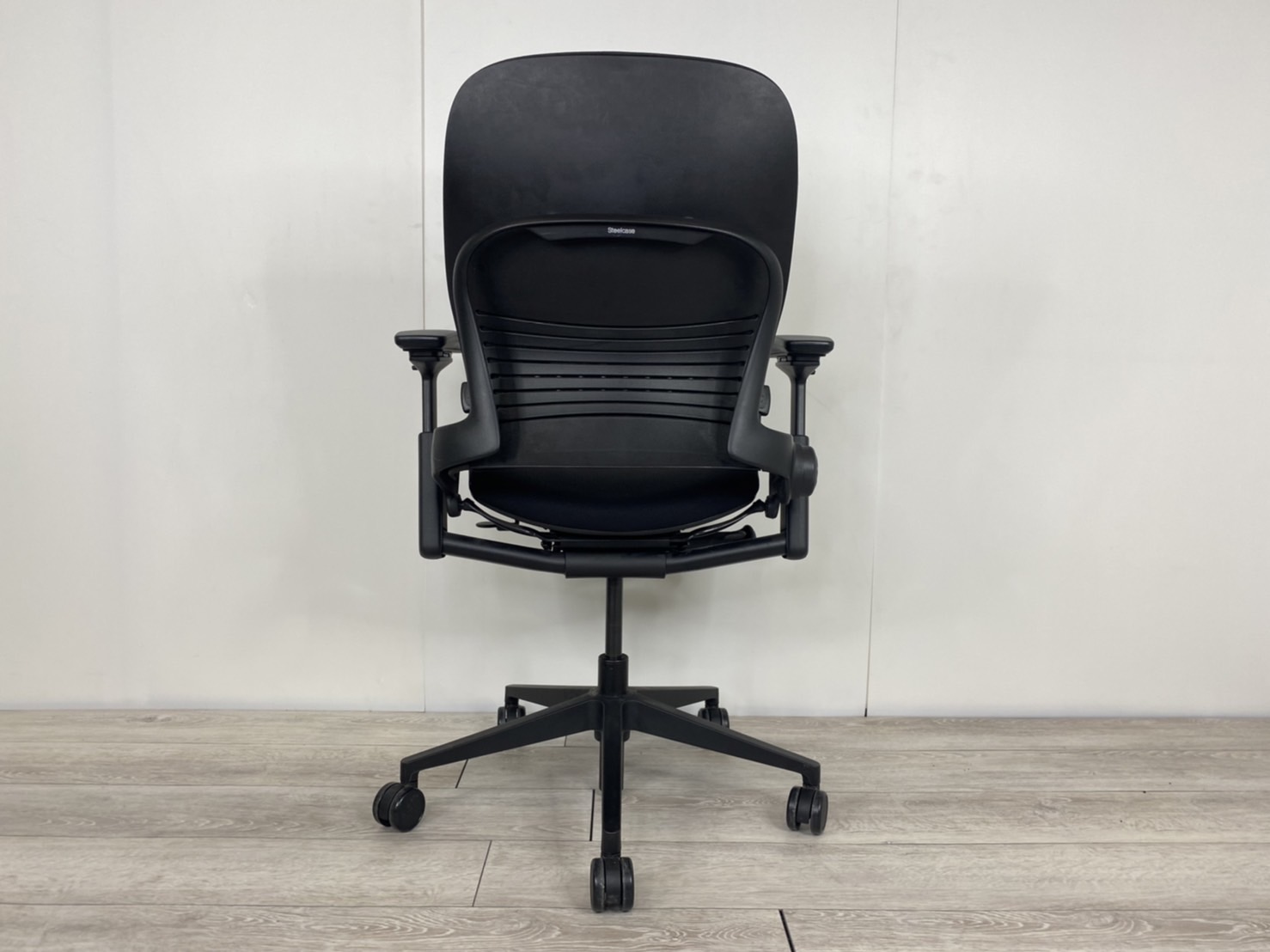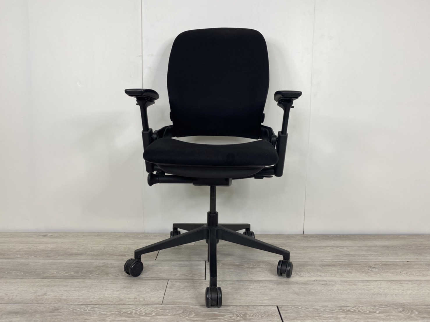 【限定1脚】ワークチェア アームレスト付 可動肘 ブラックフレーム オススメ(おすすめ) 大人気 ・Steel case/スチールケース ・Leap-v2/リープV2 ※横浜本店撮影画像※