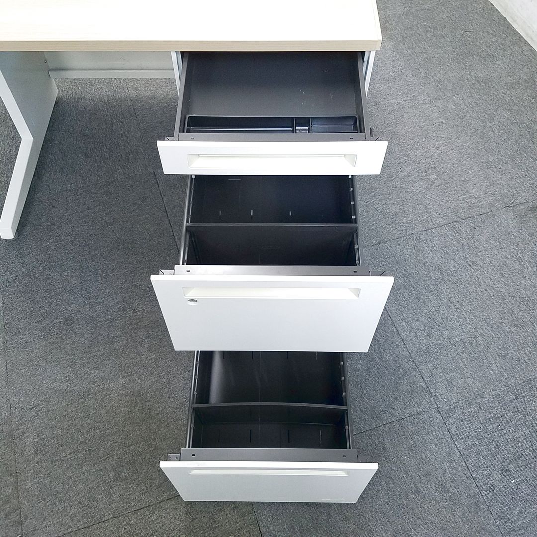 【在庫入れ替え】【人気のコンパクトサイズ!スタイリッシュな木目天板!】 ■オカムラ(okamura)製 アドバンスシリーズ 片袖デスク W1000mm ■木目ナチュラル天板 × ネオホワイトボディー ■シリンダー鍵