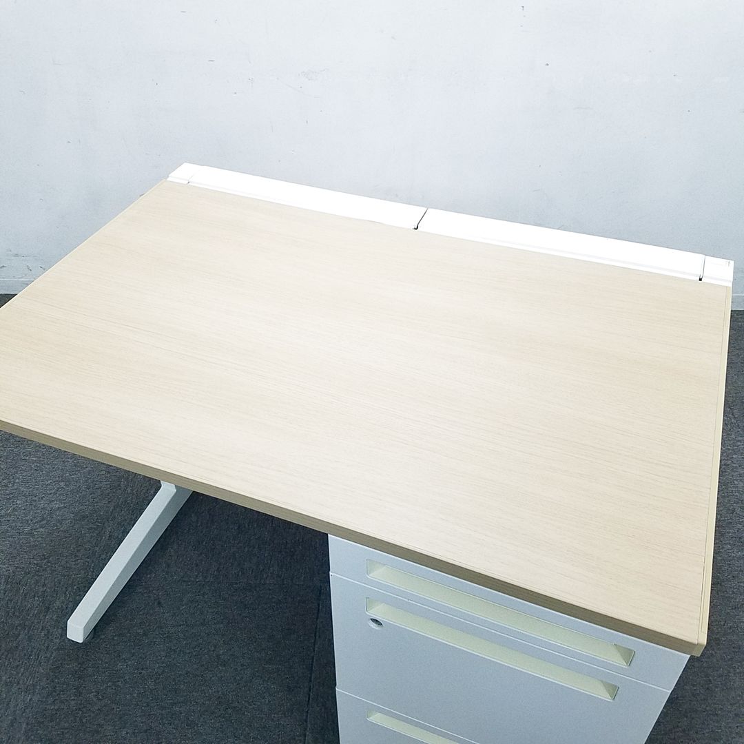 【4台限定】【人気のコンパクトサイズ!スタイリッシュな木目デザイン!】 ■オカムラ(okamura)製 アドバンスシリーズ 片袖デスク W1000mm ■木目ナチュラル天板×ネオホワイトボディー ■シリンダー鍵【K9】