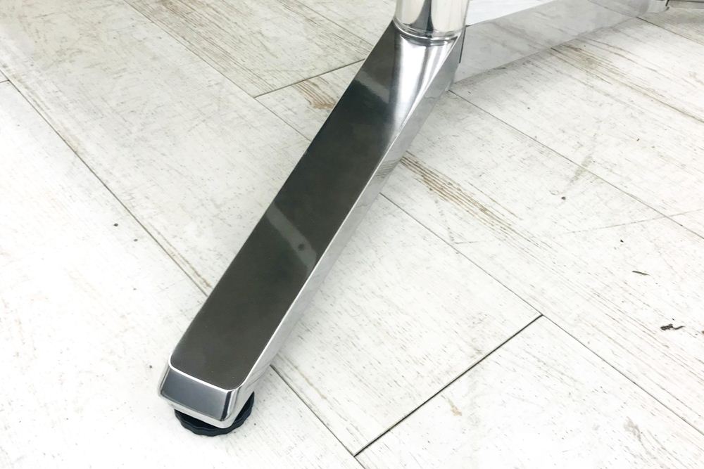 中間足が無いので、下肢空間が広く高級チェアや肘付きのチェアを組み合わせても、
