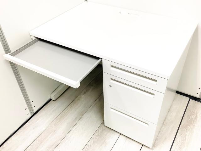【ダイヤル錠】【コンパクトサイズの袖付き机】 内田洋行(UCHIDA)スカエナデスク ダイヤル錠 片袖机 幅1000㎜ ■色:ホワイト