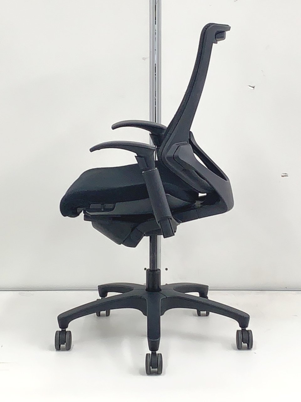 【三次元フォルムが腰にフィット!】希少なエラストマータイプ! ■イトーキ製 エフチェア 肘付 ブラック ハイバック ■姿勢の変化にフレキシブルに対応!