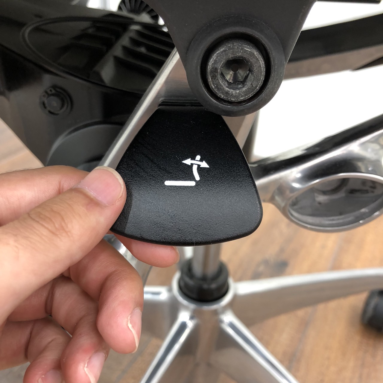 両手を自然に下ろした位置にあるレバーで、座面の奥行きを前後50mm調整が可能です。