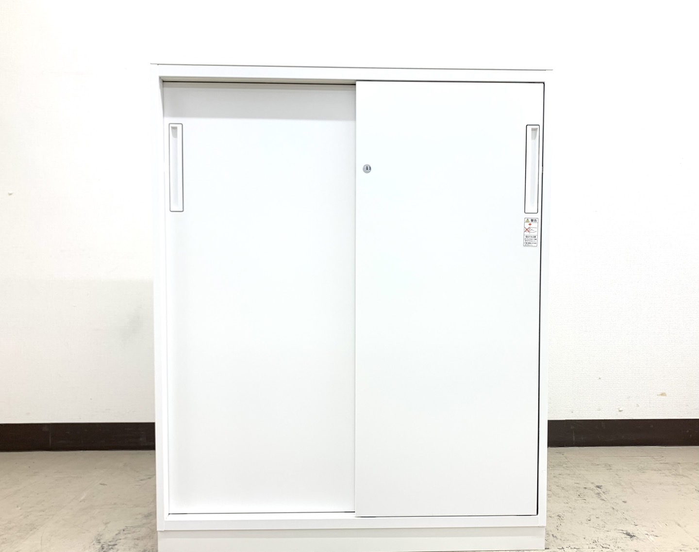 【スライド引き戸だから開閉スペースに困らない!】■コクヨ(KOKUYO)製 エディア(EDIA)シリーズ 2枚引き違い書庫 ローキャビネット シリンダー錠 天板付き ベース付き ホワイト シリンダー錠 収納 中古家具 格安 福岡 オフィス家具 九州最大級《オフィスバスターズ福岡博多店は、福岡を拠点として、日本全国へ中古オフィス用品・オフィス家具を提供しております》