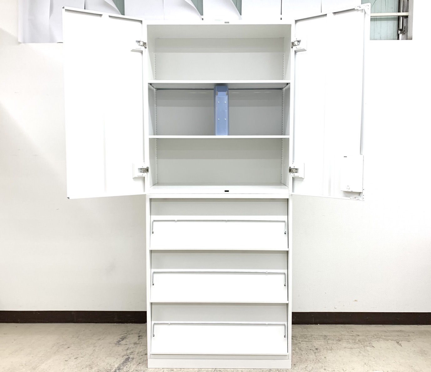 - 一部不具合ありそ引出の開閉不可、施錠不可、棚板無しといったの書庫の本来の効用を果たすための機能以外の一部が使用不可(例、扉、引出の開閉がしづらいなどがある。 )