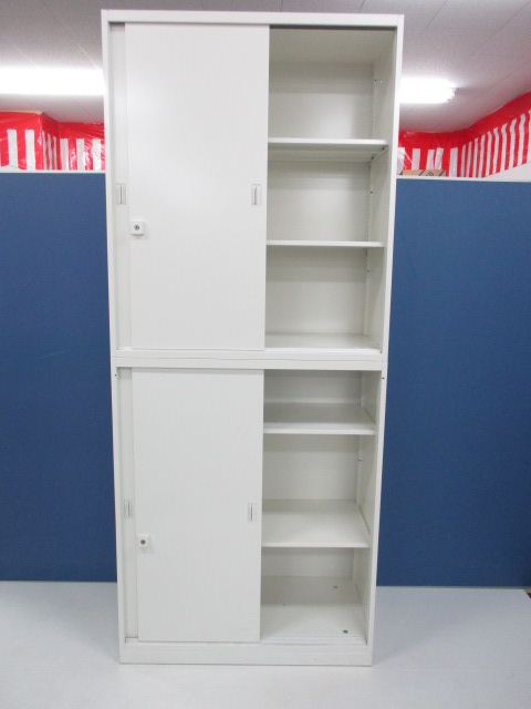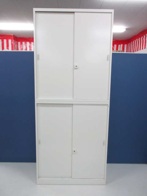 【上下引き戸書庫セット!】オカムラ/レクトライン/ホワイト/シリンダー錠- つくば店