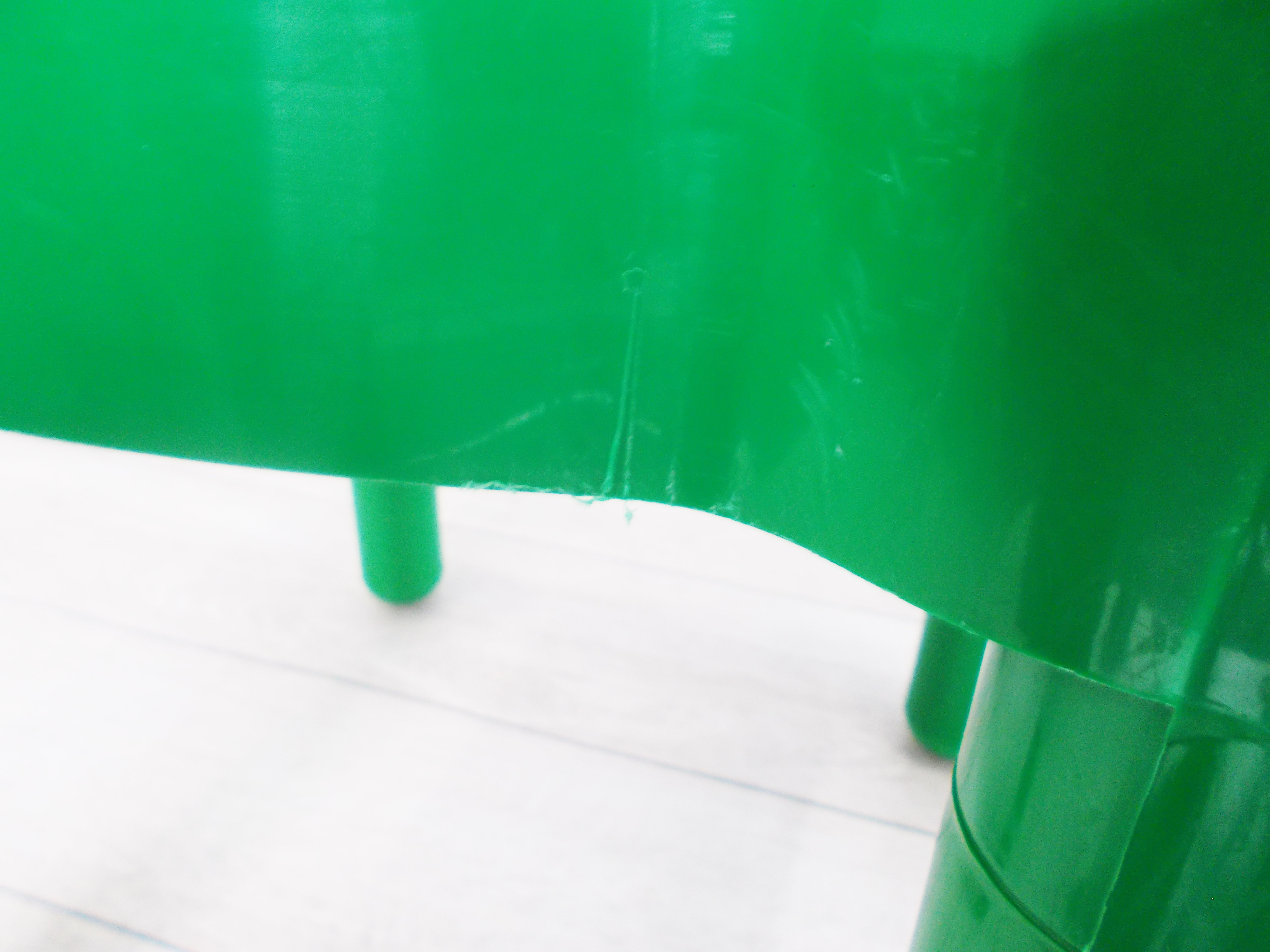 - かなり強い濃い黄ばみ・変色が商品全体にある。(例、座面・背もたれ、脚部等にある。)
