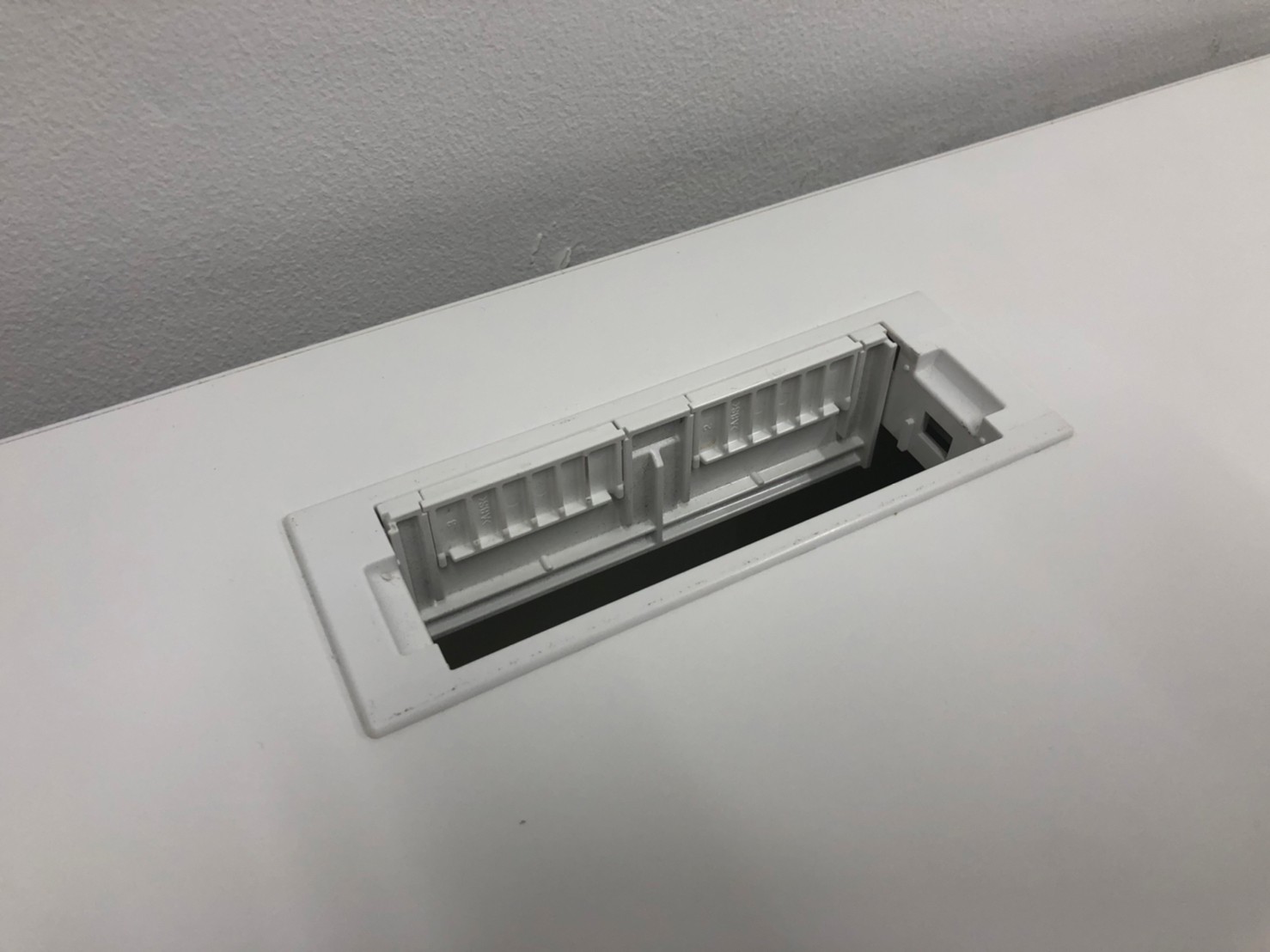 ケーブル類をスマートに収納し、デスクを並べた際のデスク間の配線もスムーズに行えます。