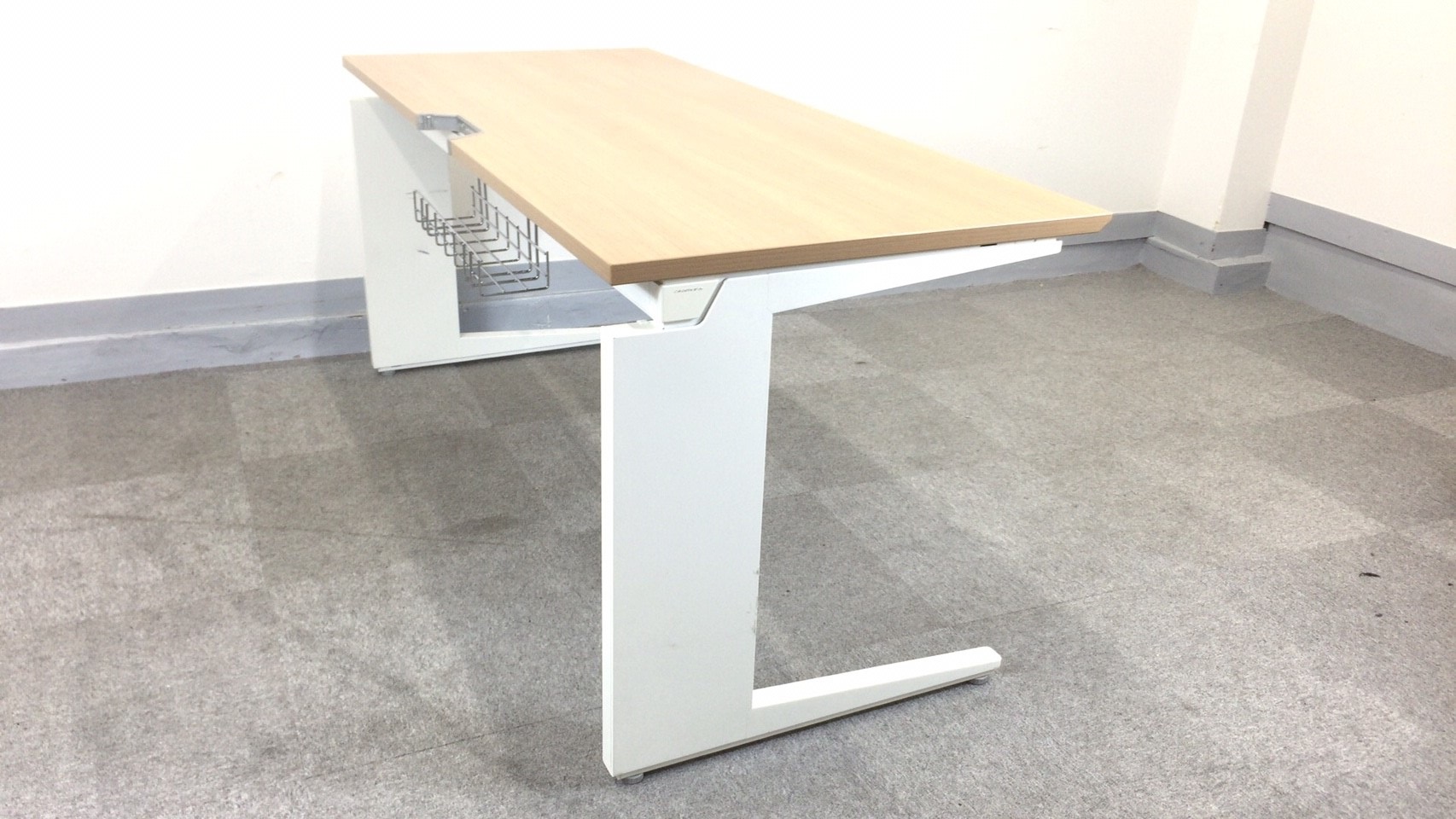 【スタイリッシュな木目デスク入荷!】■オカムラ製 平デスク W1400mm ナチュラル天板 ■ゆとりのあるワークスペース!- 川崎店
