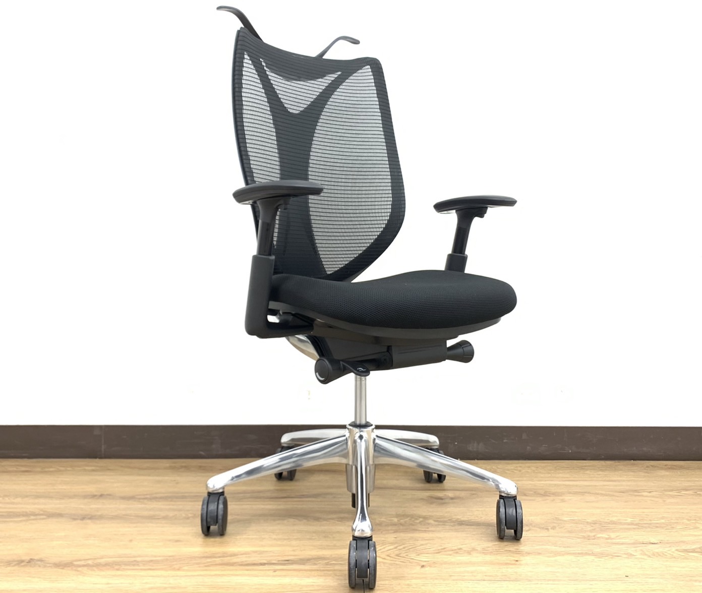 【1脚入荷!!】前傾チルト付!流れるような美しいフォルム!最高級メッシュチェア■オカムラ(okamura)製 Sabrina(サブリナ) ハイバック 可動肘付き ■ブラック【しなやかに、しっかりフィット】【AD】
