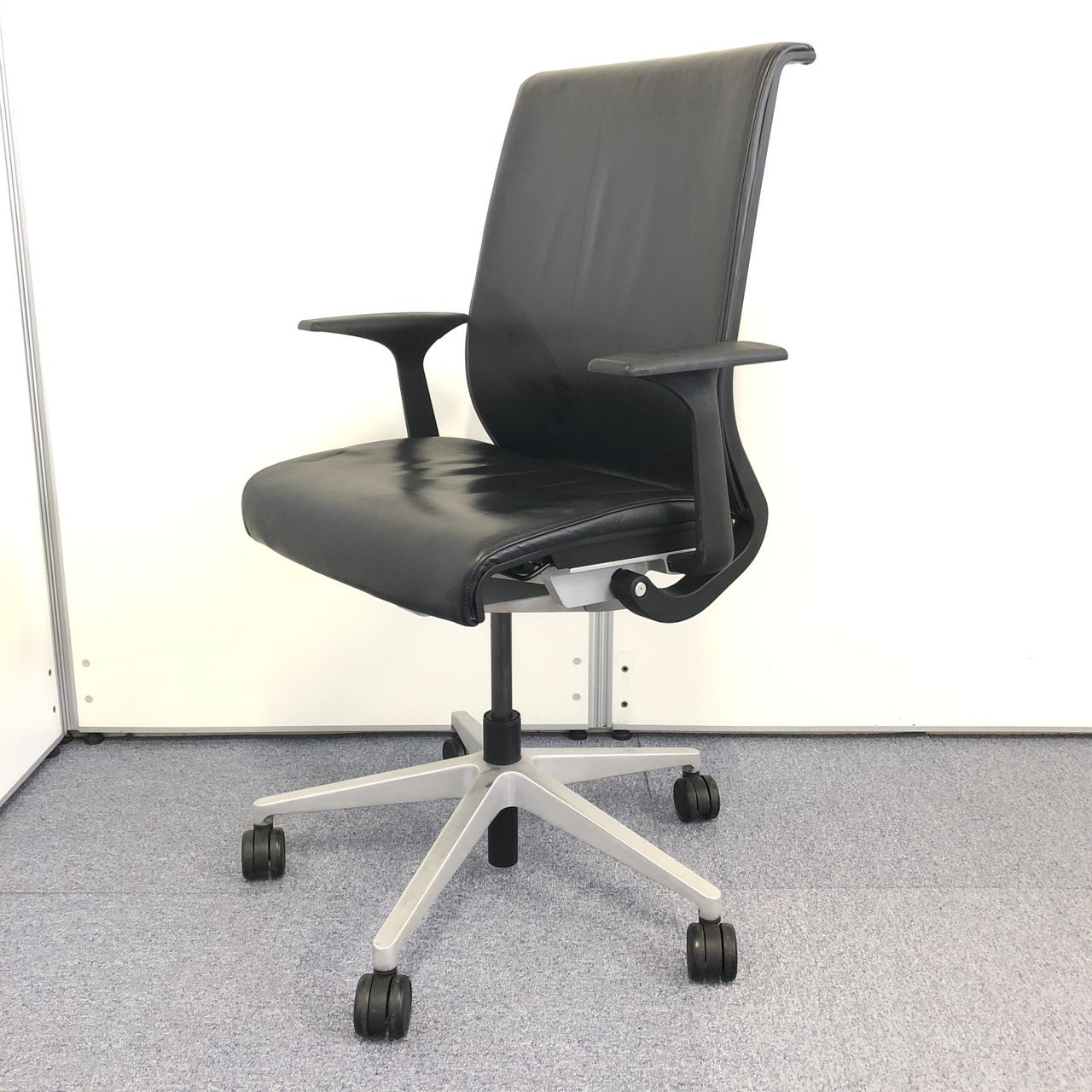 【4脚限定!!】【在庫入れ替えセール】スチールケース|シンク|ブラック|レザータイプ|肘付きハイバックチェア!!【関西在庫数ナンバーワン・尼崎店】- オフィスチェア店