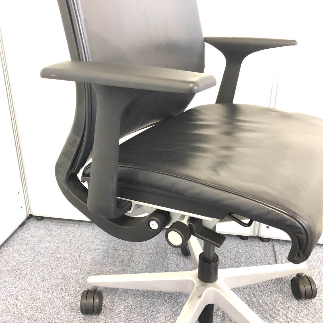 快適な座り心地に不可欠な調節機能である、上下昇降、座面の奥行き調整、リクライニングなどを備えており、操作もわかりやすく好評です。 特に、座面の奥行きは、座面下の左右に通った細いバーで調整でき、座ったままで軽やかに滑るように調整が可能です。 価格面では、新品では高めですが、中古は流通も多く、定価の3割前後の価格で高級チェアの座り心地を手に入れることができます!