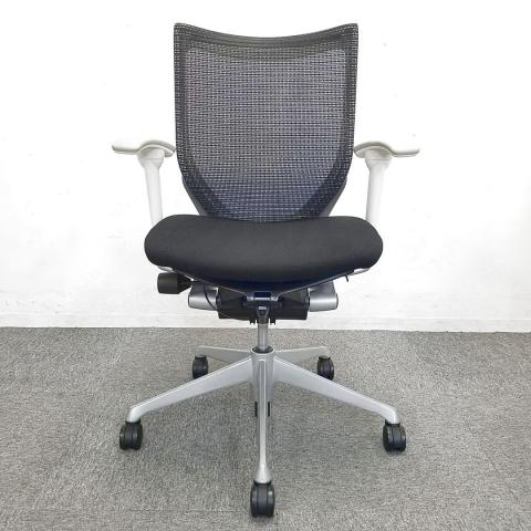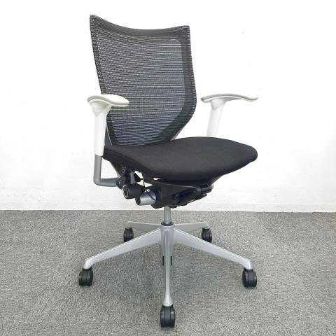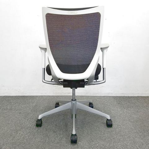 【国産メッシュチェアの代表格!オフィスの執務室、会議室におすすめ!】■オカムラ(okamura)製 バロン(Baron)チェア 肘付 ローバック 背面メッシュ ■固定肘 ■ブラック×ホワイトシェル