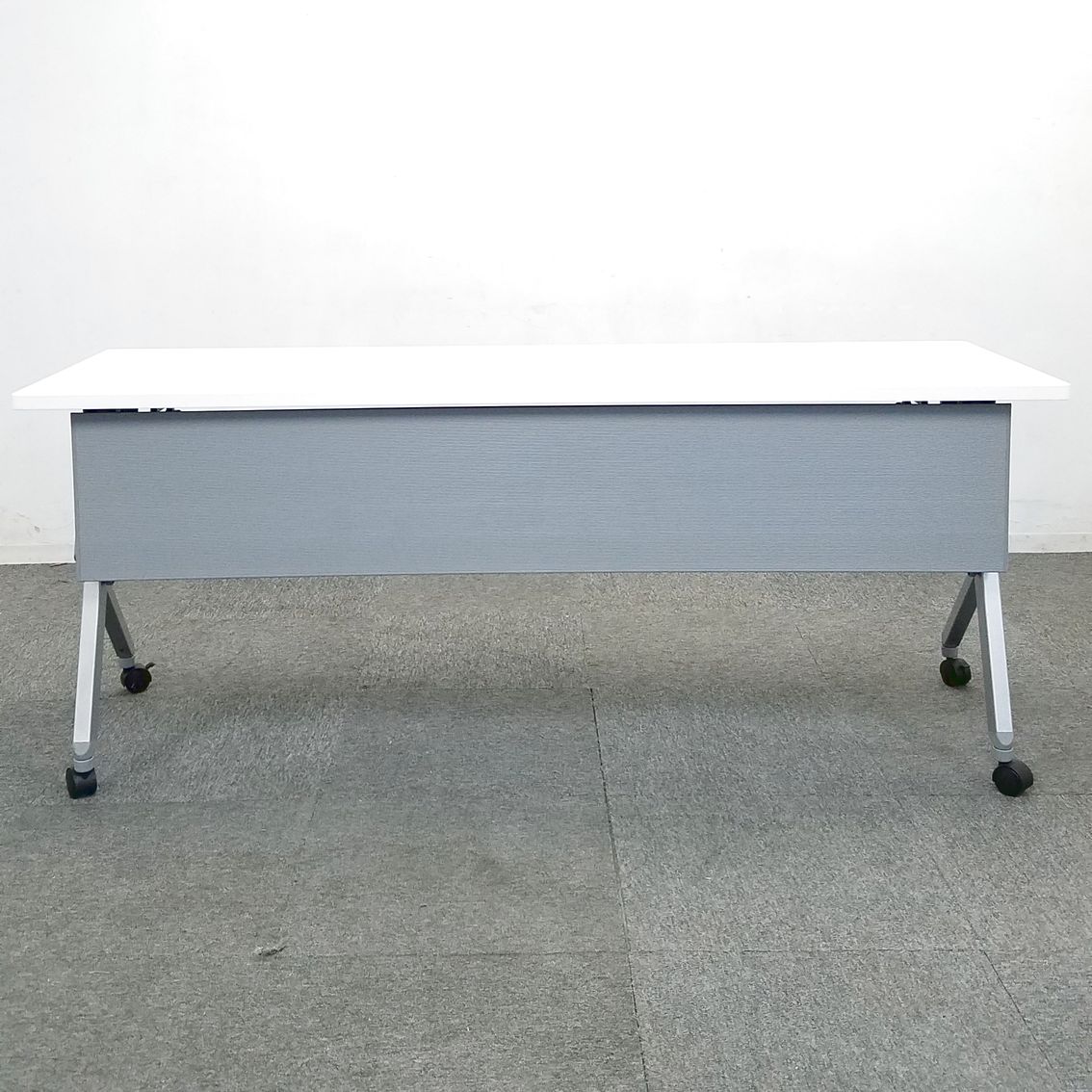 【12台入荷】オカムラ製サイドスタックテーブル入荷! 中古 テーブル コロナウイルス 飛沫防止 テレワーク セミナー W1800 幕板付き フラプター ホワイト- 大阪・堺店