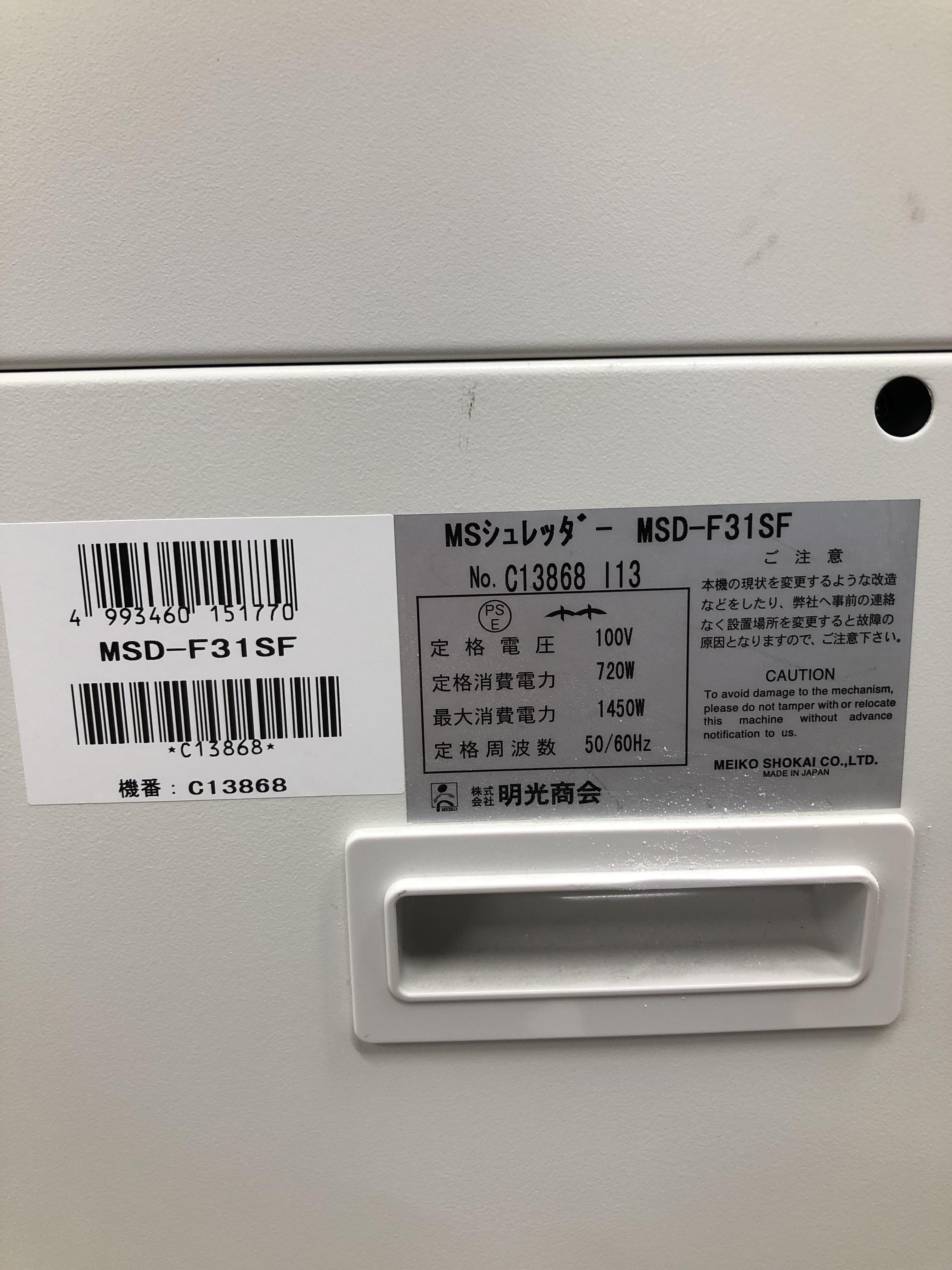 明光商会のシュレッダー、MSD-F31SFです。