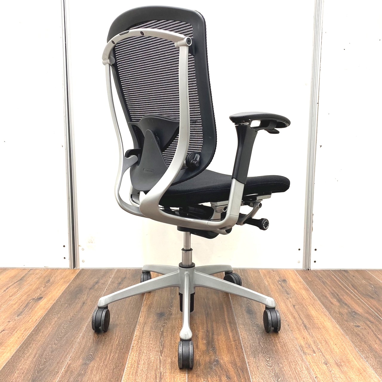 【世界で認められた革新的タスクチェア!人間工学に基づいた快適な座り心地を実現!】■オカムラ(okamura)製 コンテッサ(Contessa)チェア ハイバック 肘付き 背面メッシュ ■可動肘・ランバーサポート付 ■ブラック ※肘スレ有