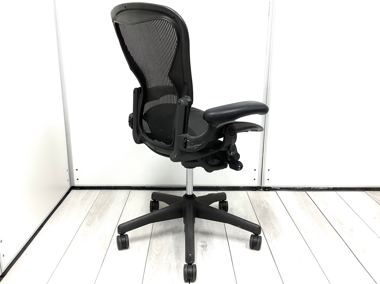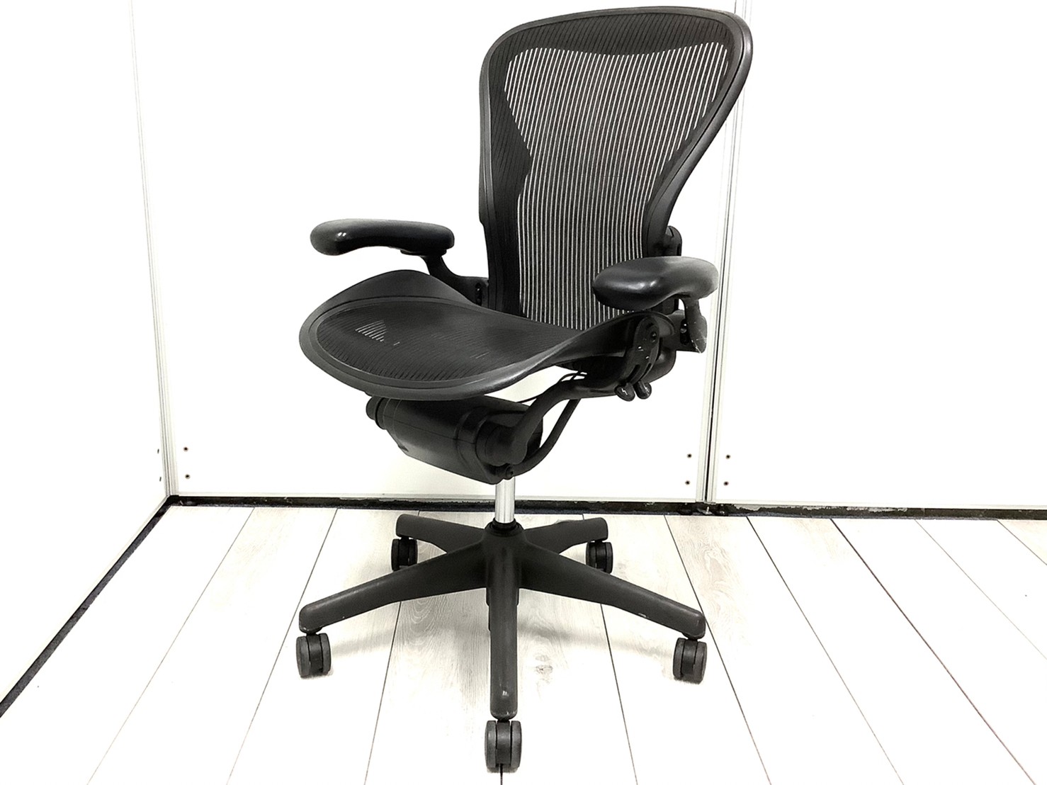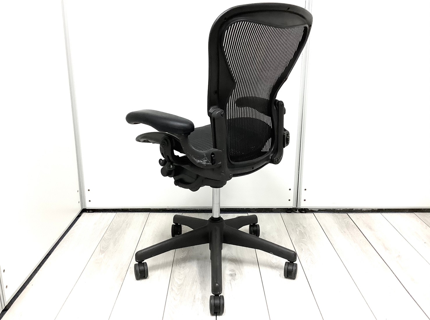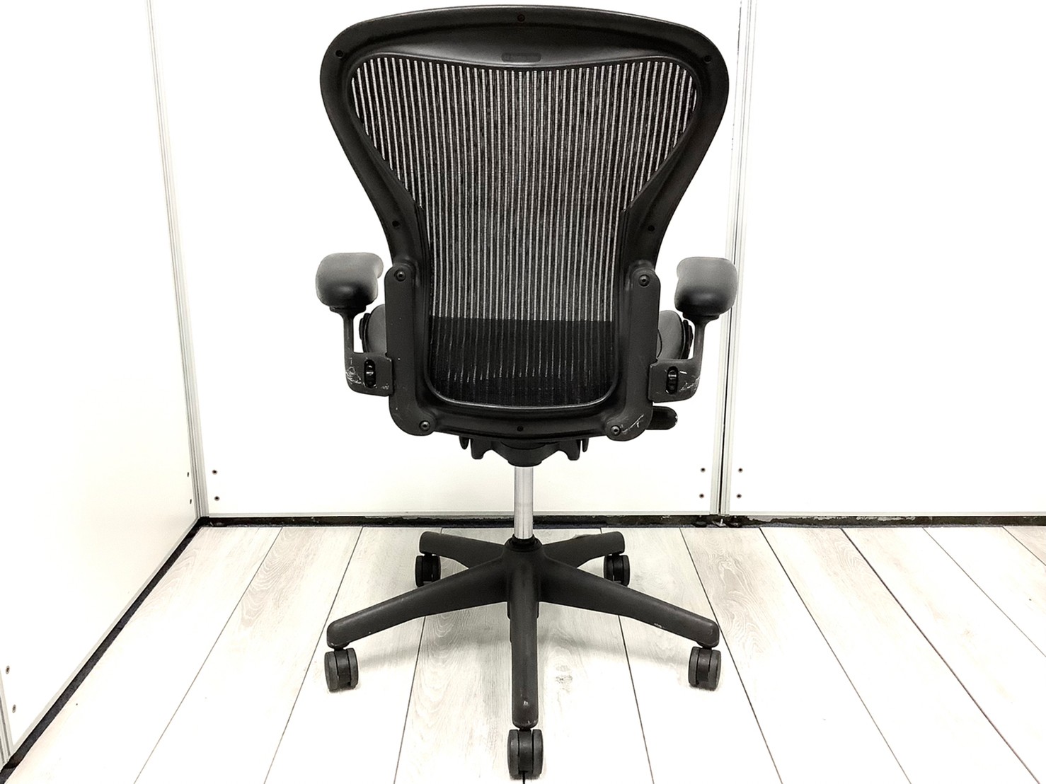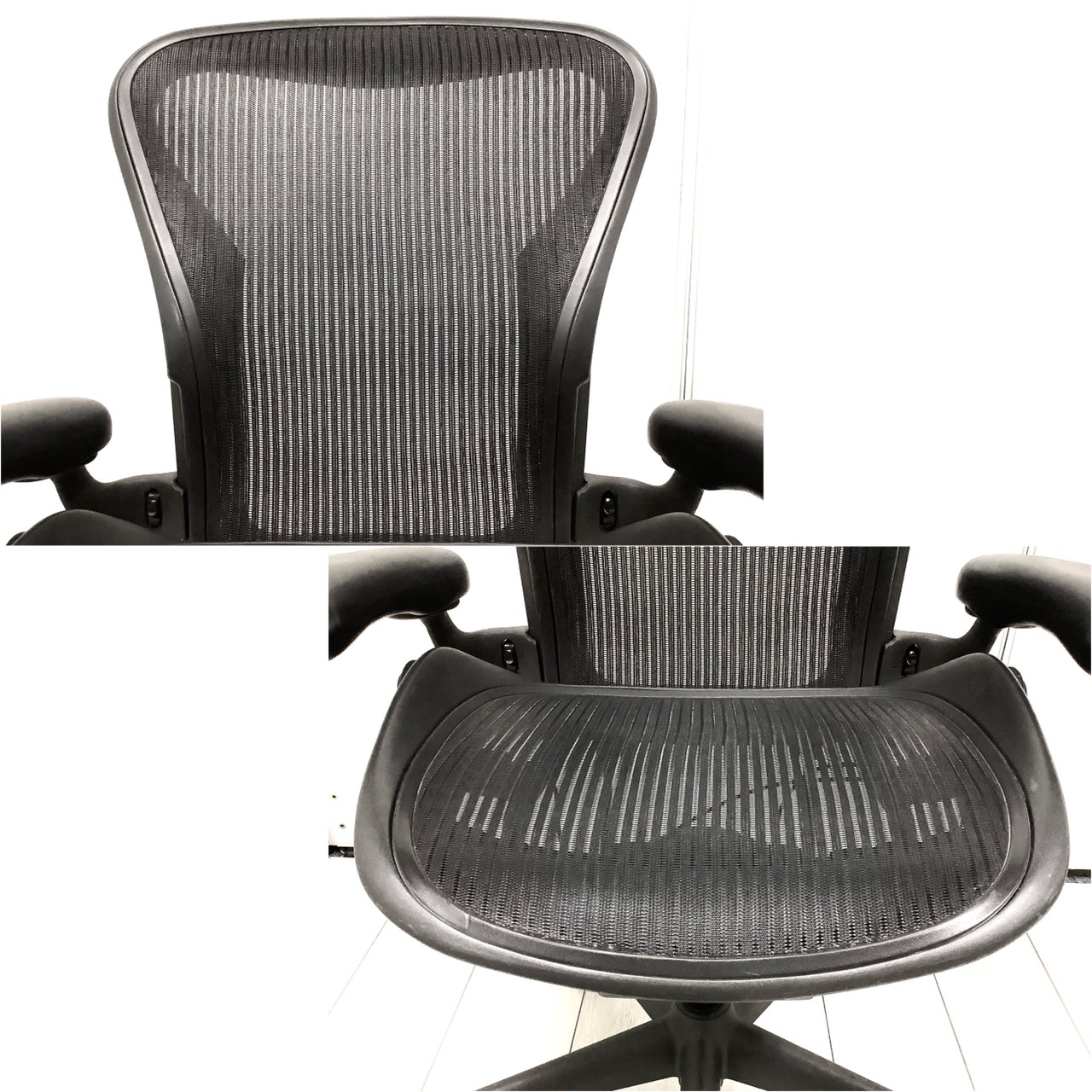 【★状態イマイチのためお安く!】■ハーマンミラー製 アーロンチェア Bサイズ 固定肘 ※キズあり・ランバーサポート無・昇降ガス圧弱めのためお安く!【訳あり特価品】
