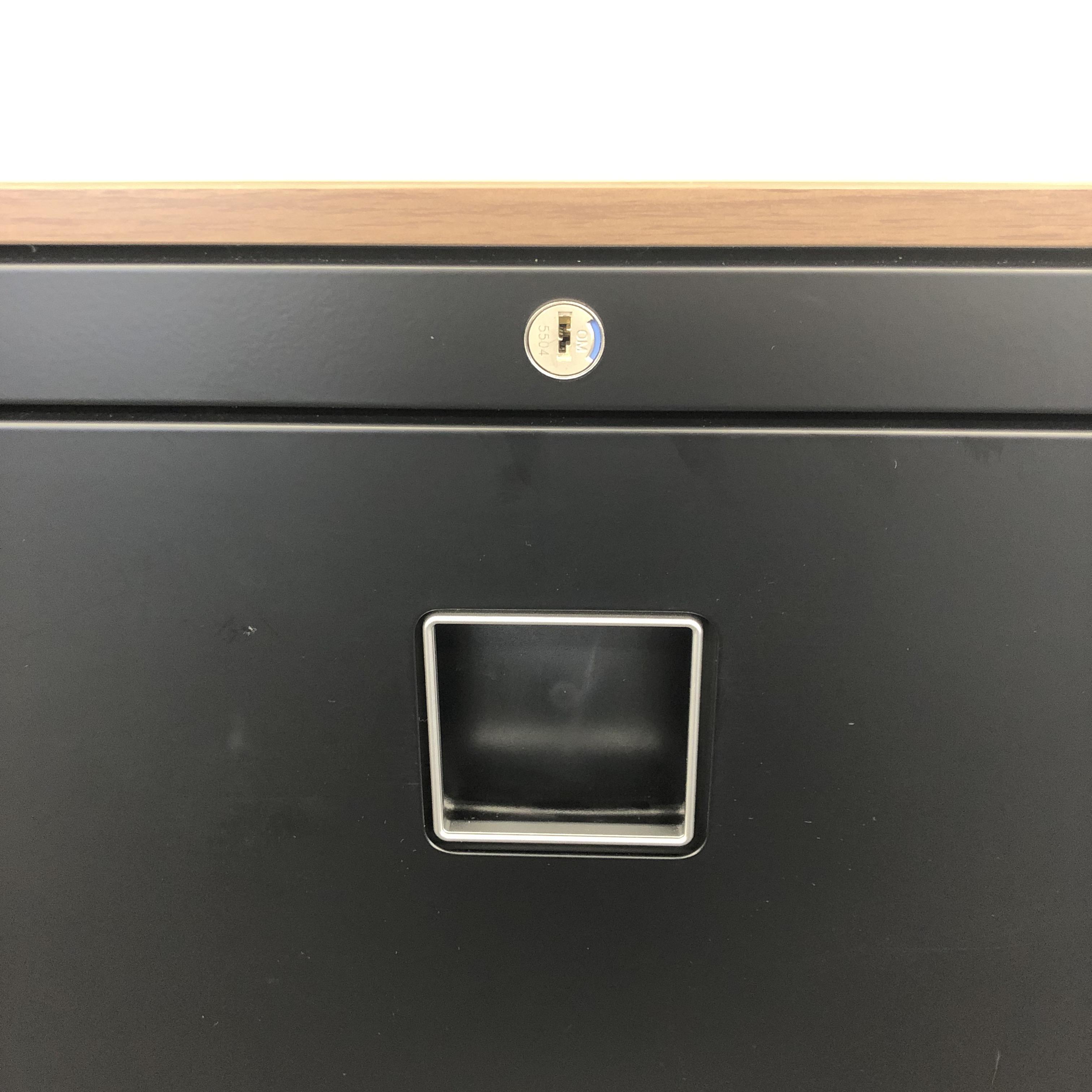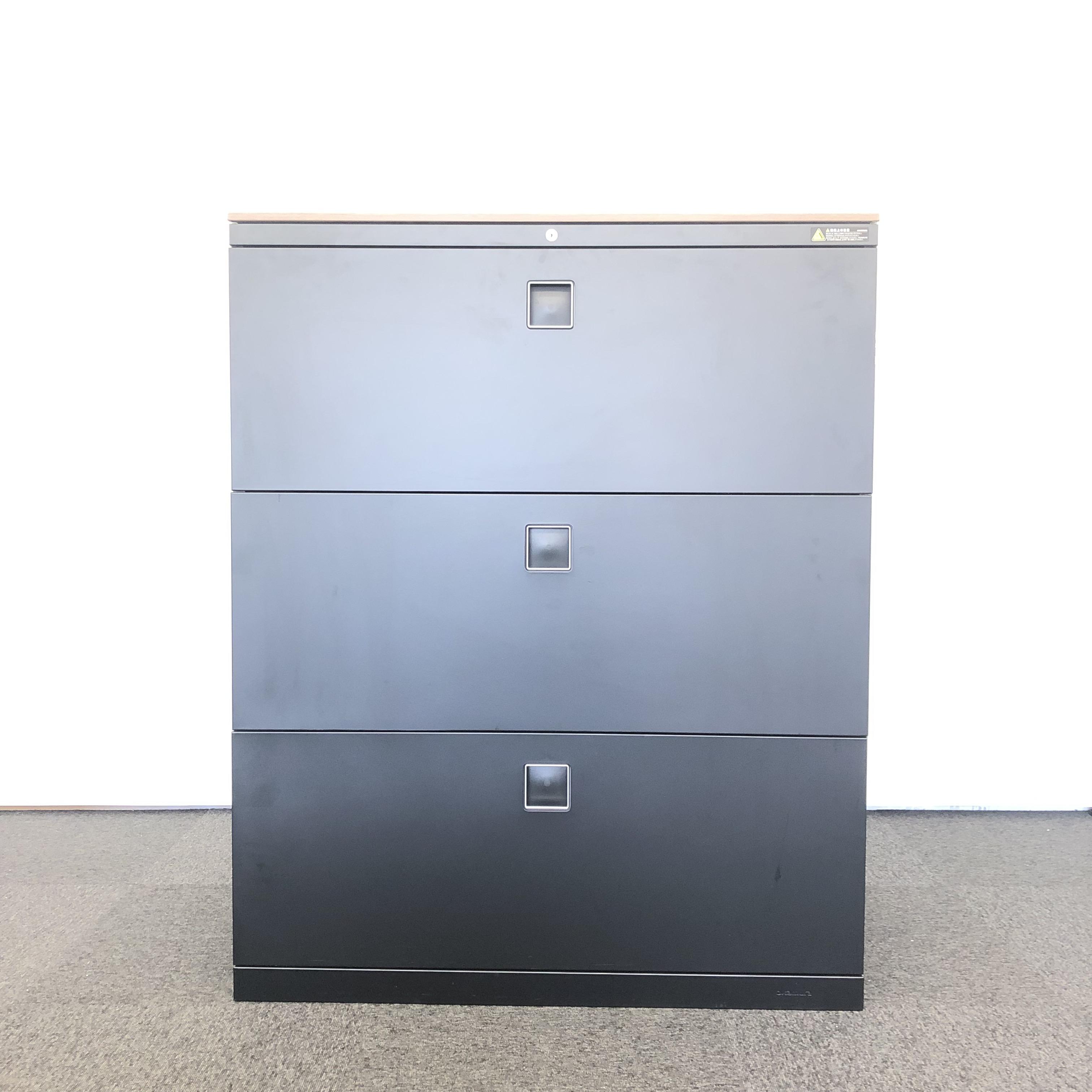 【超レアなブラック色!】オカムラ製/レクトラインシリーズ珍しいブラックカラー/ブラウン天板付き/3段ラテラル【BKNA】