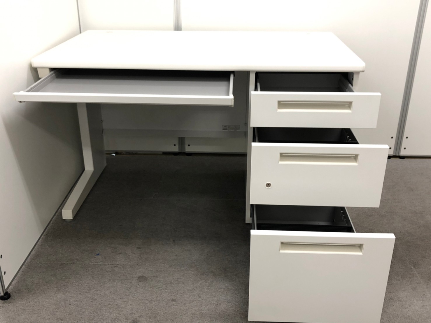 イナバ製の片袖デスクのホワイトカラーが2台入荷!