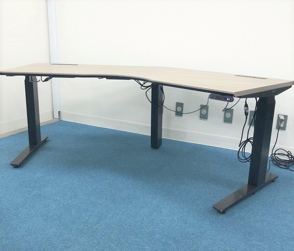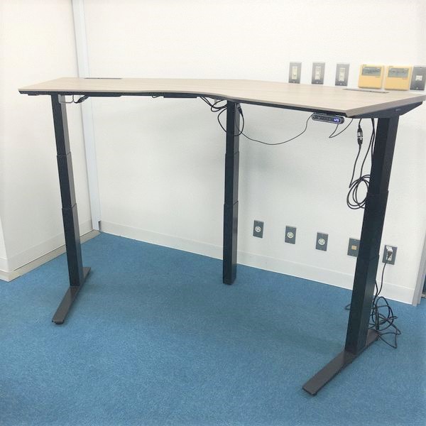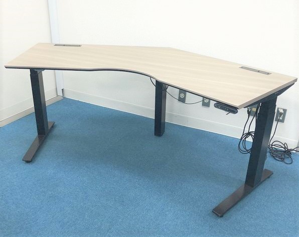 120°ブーメランデスク 上下昇降 オカムラ おしゃれなプライズウッドミディアム天板 ※特注サイズ スイフト- 名古屋千種店