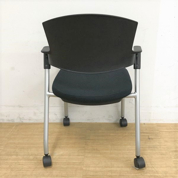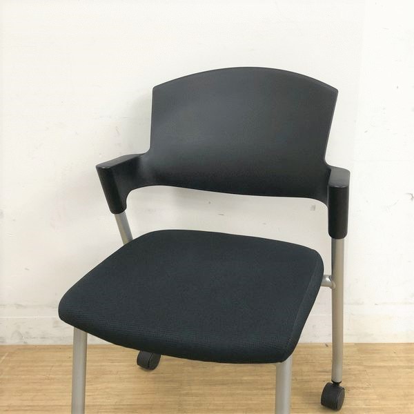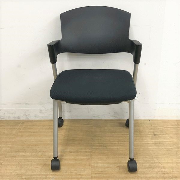 【シンプルスマートなスタッキングチェア!分厚いクッションで長時間でも快適な座り心地!】■スタッキングチェア 肘付ミーティングチェア ■固定肘 ■キャスター付 ■ブラック ■背面樹脂/コクヨ(KOKUYO/プロッティ
